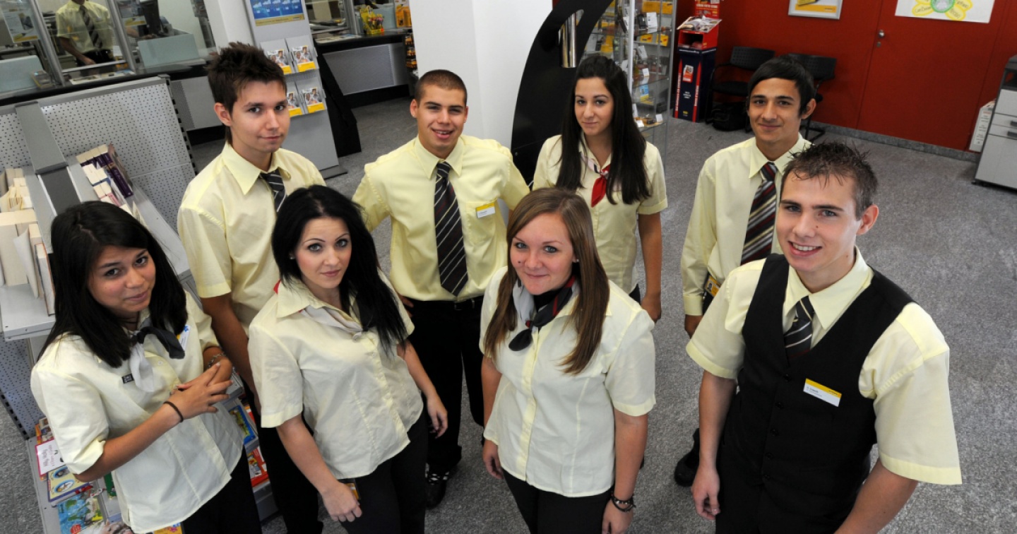 Nella foto del 2010, gli apprendisti responsabili del nuovo ufficio postale di Cassarate