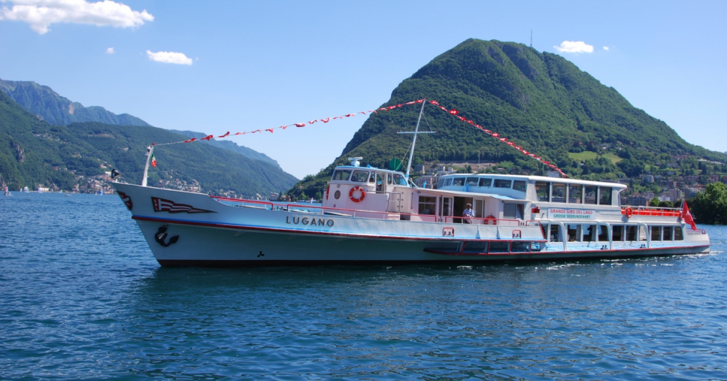 La motonave Lugano, sullo sfondo il San Salvatore