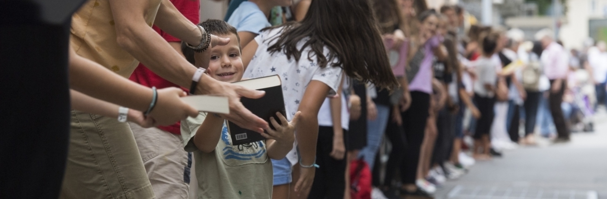 In oltre 600 hanno dato vita alla catena umana che ha trasferito 600 volumi del patrimonio librario cantonale dal Liceo al Centro culturale La Filanda