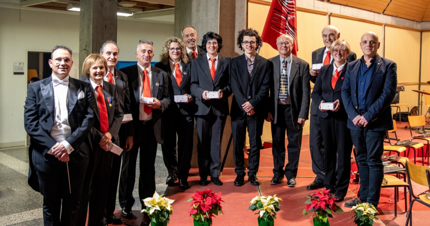 Il concerto di gala della Filarmonica comunale di Riva San Vitale tenutosi sabato 2 dicembre, è stato anche l'occasione per festeggiare diversi musicanti per i tanti anni di appartenenza alla Filarmonica. Si tratta di Chantal Cereghetti (10), Alessandro Marziano (20), Michela Guarisco e Sonja Hürschler (30), Massimiliano Stocco (35) e Carlo Molteni (65).