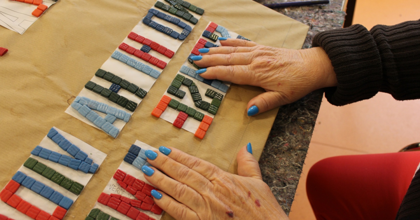 “Siate coraggiosi”. Le tessere colorate danno forma a un pensiero che oggi quanto mai vale più di un semplice incoraggiamento. Presto resteranno scolpite per sempre in una via di Chiasso su una targa-mosaico, memento per quanti attraverseranno questa realtà di frontiera. Nell’atelier del Centro diurno Osc (Organizzazione sociopsichiatrica cantonale) di Chiasso da mesi si sta lavorando con passione a un progetto che ha l’ambizione dichiarata di fissare nella pietra ‘Le parole dell’umanità’; per sentirci tutti un po’ più parte di questa nostra comunità. Non a caso l’iniziativa è scaturita da una intuizione dell’artista siciliano Benedetto Norcia – che nella cittadina ci ha vissuto per un ventina di anni – e si è concretizzata grazie all’arte dell’incontro, che ha fatto incrociare le vite degli utenti del Club Athena con il festival ‘ChiassoLetteraria’, lo stesso Comune e altre realtà sociali locali. Una esperienza che presto ci consegnerà una ventina di opere e altrettanti pensieri che coglieranno di sorpresa il passante lungo un percorso che verrà inaugurato in veste ufficiale giovedì 2 maggio (alle 18).
