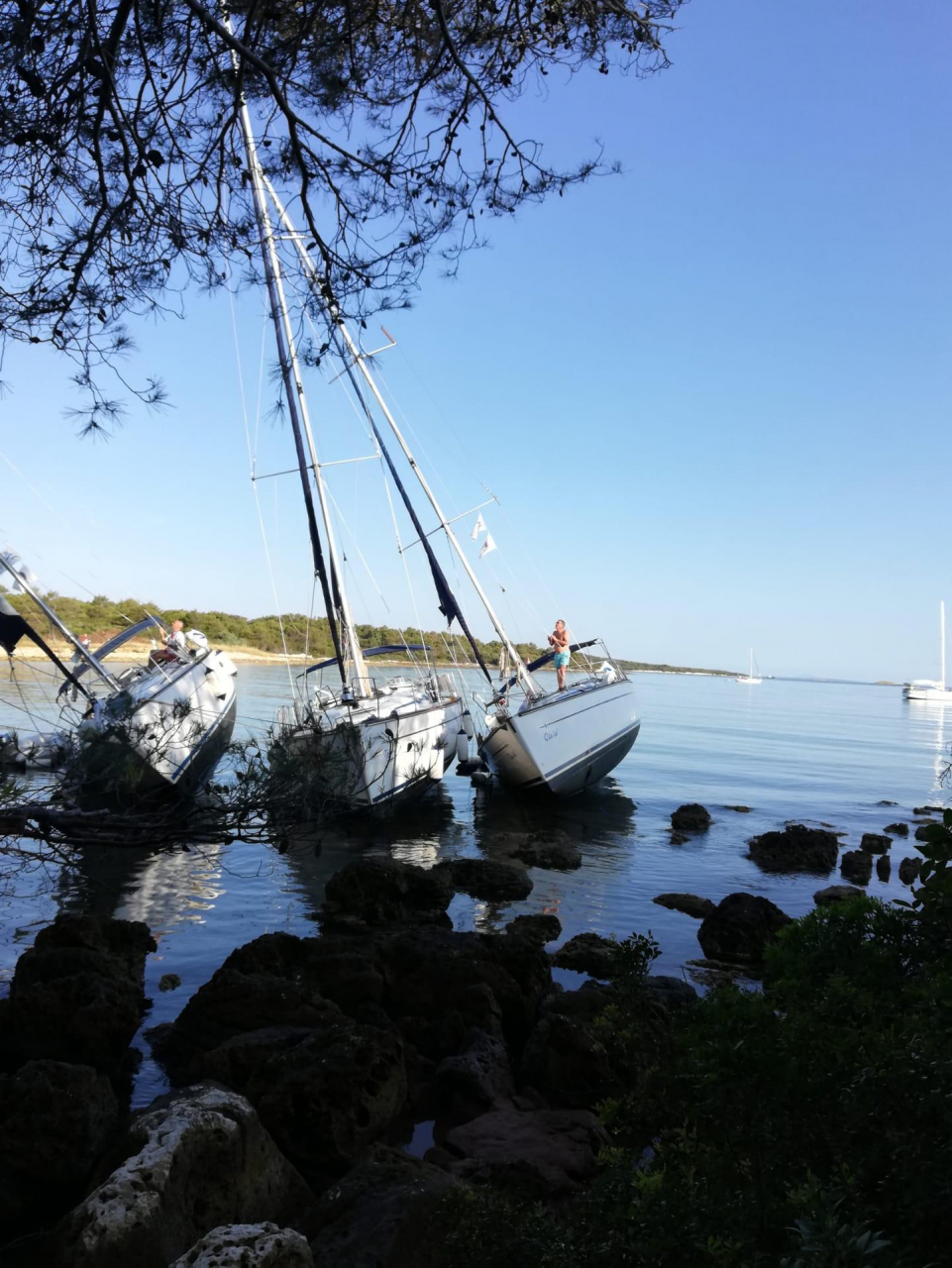 Non appena le condizioni del mare hanno reso possibile il trasbordo in sicurezza, il personale della compagnia di noleggio (già in zona per una piccola riparazione alla pompa dell'acqua di una delle barche) ha sbarcato le persone, tutte maggiorenni, rimaste a bordo durante la burrasca e che, come detto, hanno solo preso un bello spavento. I ragazzi, sempre assistiti dagli skipper e dagli educatori di Velamica, hanno dormito in una struttura messa a disposizione dalla comunità di Molat che ha accolto anche altri equipaggi colpiti dal maltempo.