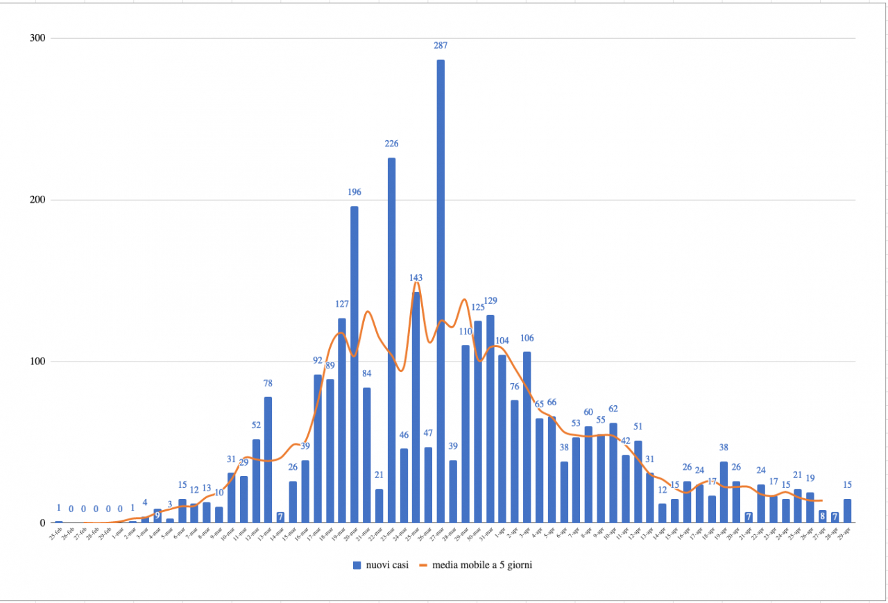 Quindici persone contagiate in più rispetto a ieri (per un totale di 3'191), due decessi in più (318) e altre 16 persone (728) che hanno potuto lasciare l'ospedale.