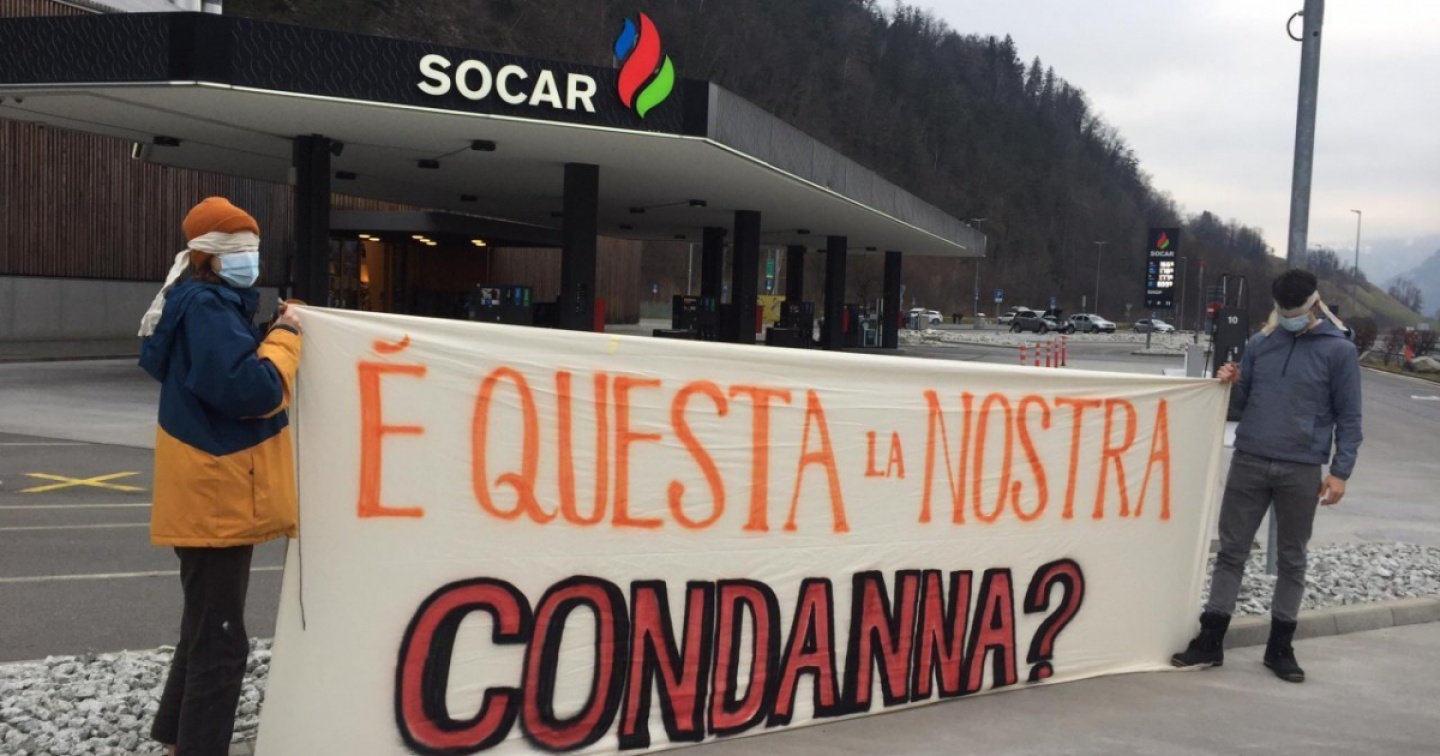 Tre giovani attivisti per il clima hanno percorso la Svizzera in lungo e in largo, da Lugano a Berna, fermandosi scrupolosamente presso numerose stazioni di rifornimento di benzina sulla via, per una singolare azione di protesta. A ogni stazione di servizio (Shell, BP, Avia, Eni, Socar,… ) hanno esposto uno striscione che portava, a lettere cubitali, l’emblematica domanda: “È questa la nostra condanna?”.