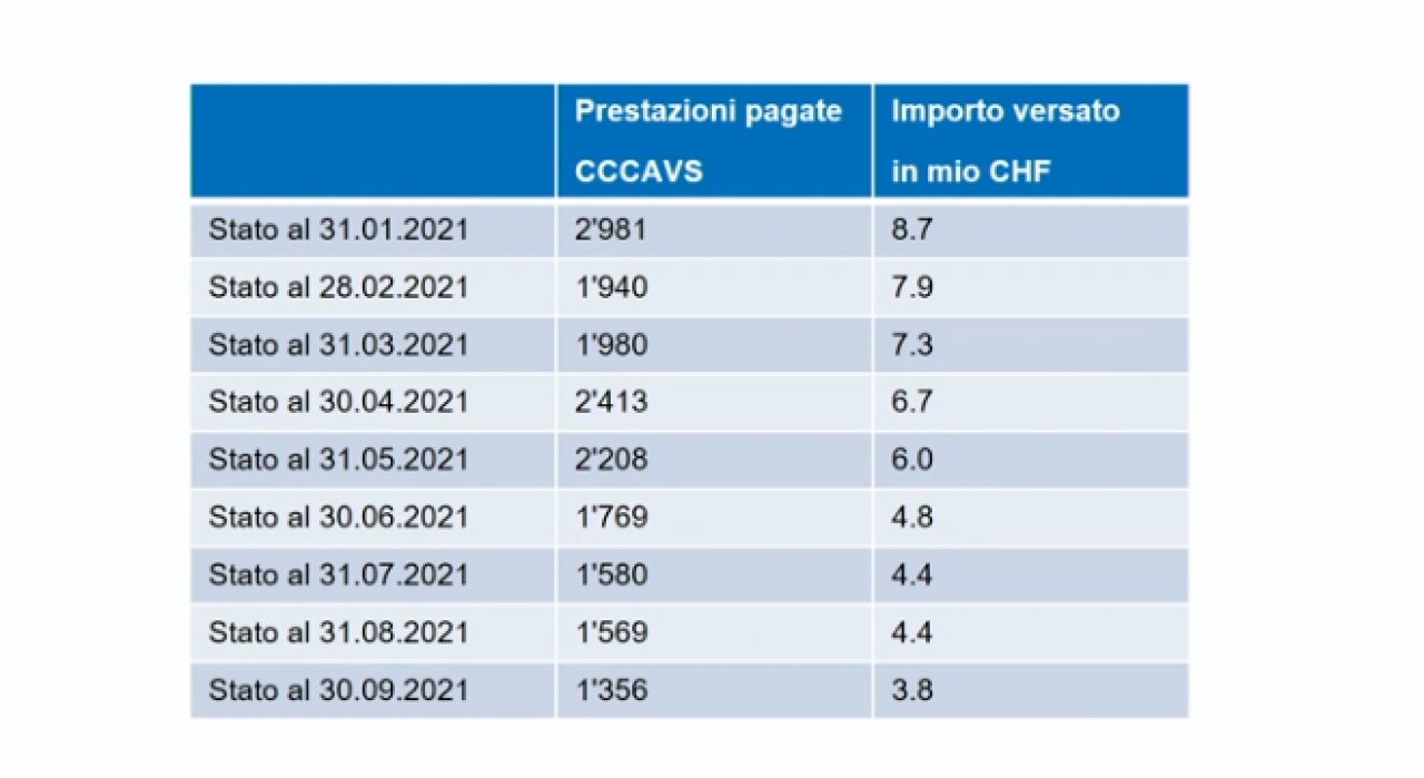 Da settembre dell’anno scorso, ha precisato Montorfani, sono state negate molte più richieste rispetto a prima poiché la Confederazione ha chiesto di svolgere verifiche più precise sul diritto a percepirle da parte dei richiedenti. Finora agli indipendenti sono stati versati circa 200 milioni di franchi.