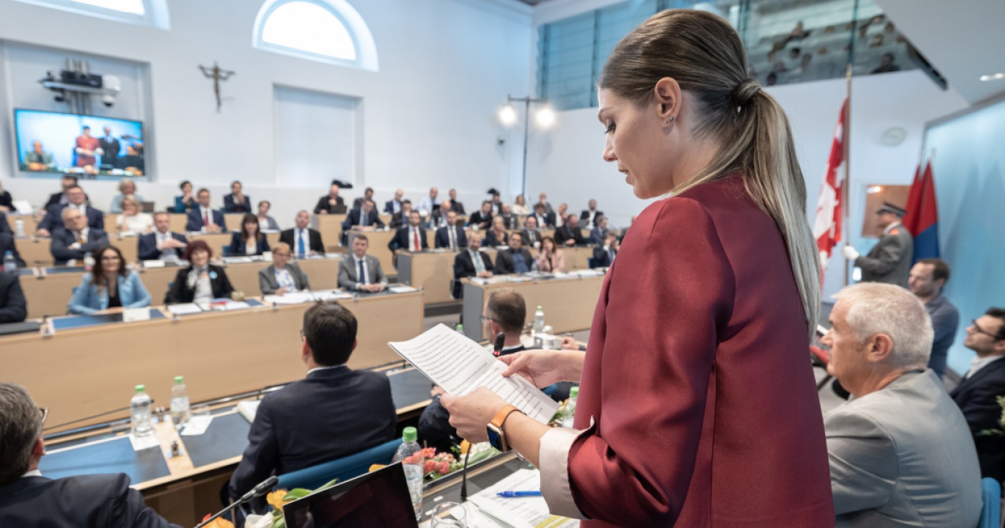 La deputata del Centro eletta Prima cittadina del cantone. Festa, sorrisi e battute in attesa della discussione sulla ripartizione dei seggi commissionali