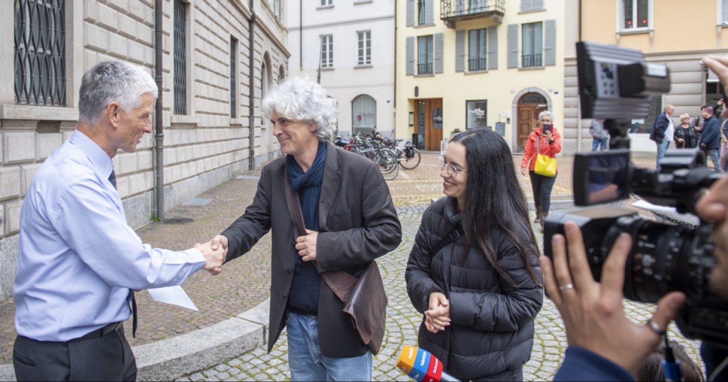 Per la consegna della lettera a firma ErreDiPi, la Rete per la difesa delle pensioni, occorre attendere ancora qualche minuto. Al gruppo di persone già convenute davanti a Palazzo delle Orsoline si unisce intanto quello proveniente dalla Scuola cantonale di commercio. Lo striscione: “Giù le mani dalle pensioni”. Il gruppo di insegnanti è guidato da Tommaso Soldini, docente anche lui alla Commercio e scrittore.