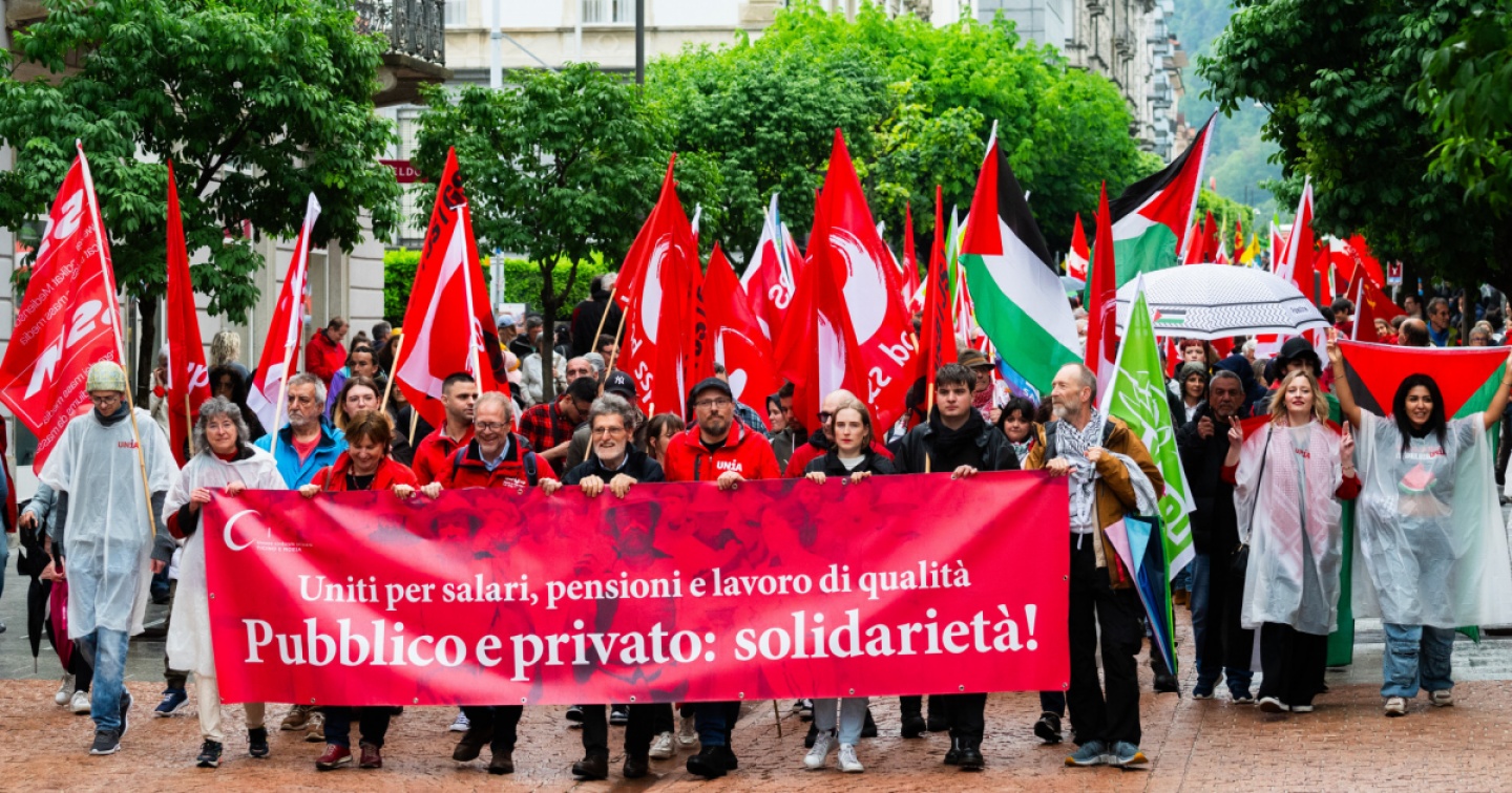 Un Primo maggio bagnato che ha visto la partecipazione di un migliaio di persone al corteo dalla stazione di Bellinzona a piazza Governo. Tanti i temi caldi ribaditi dalla piazza. «Siamo qui – ha sottolineato dal palco Giangiorgio Gargantini, segretario regionale di Unia e vicepresidente regionale dell’Uss – per difendere salari, pensioni e lavoro di qualità. Tre rivendicazioni storiche».