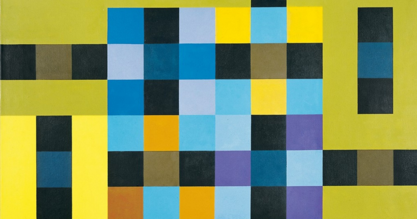 © Collezione privata / Gallery Knoell‘Sequenza diagonale di quadrati con triangoli scuri’, 1976, olio su tela