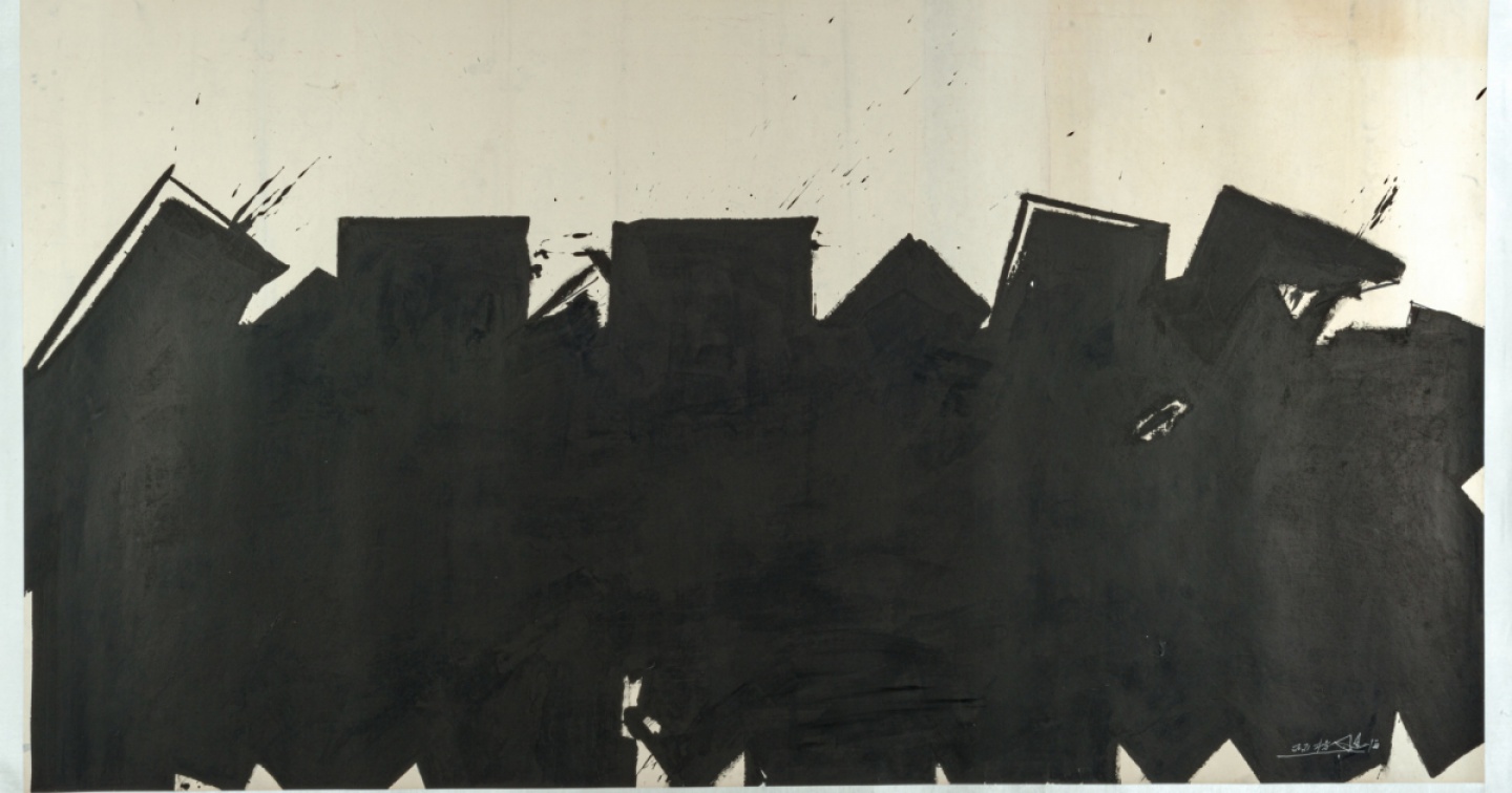 Yang Xiaojian è nato nel 1960 a Taiyuan, città della Cina settentrionale a circa 400 chilometri da Pechino, e il suo percorso artistico ben rappresenta l’idea alla base del ciclo espositivo ‘Global Aesthetics’ che mira a valorizzare la creatività contemporanea ricostruendone le radici e le influenze. Nel caso di Xiaojian queste radici sono la calligrafia cinese, arte per la quale Yang Xiaojian ha mostrato, fin da bambino, una predisposizione, iniziando a vendere proprie calligrafie già negli anni Ottanta e migliorando sempre più dal punto di vista tecnico e stilistico. Poi, alla fine degli anni Novanta, accadono due cose. La prima è la morte del padre, con la possibilità di viaggiare in altre regioni della Cina e nei Paesi vicini; la seconda è la sempre più marcata percezione dei limiti dell’arte calligrafica tradizionale. “Per quanto bella possa essere, la calligrafia è condizionata dai suoi antenati e se impari dai maestri tradizionali puoi solo esserne schiavo. Al contrario, l’arte necessita di creazione e di individualità”, scrive in quel periodo. Yang Xiaojian inizia quindi a cercare nuove idee, interessandosi soprattutto alla pittura moderna occidentale – nella documentazione stampa si citano Motherwell, Dubuffet, Soulages, de Kooning e Rotko – e all’astrattismo, in particolare l’hard-edge statunitense, ma potremmo citare anche l’action painting.