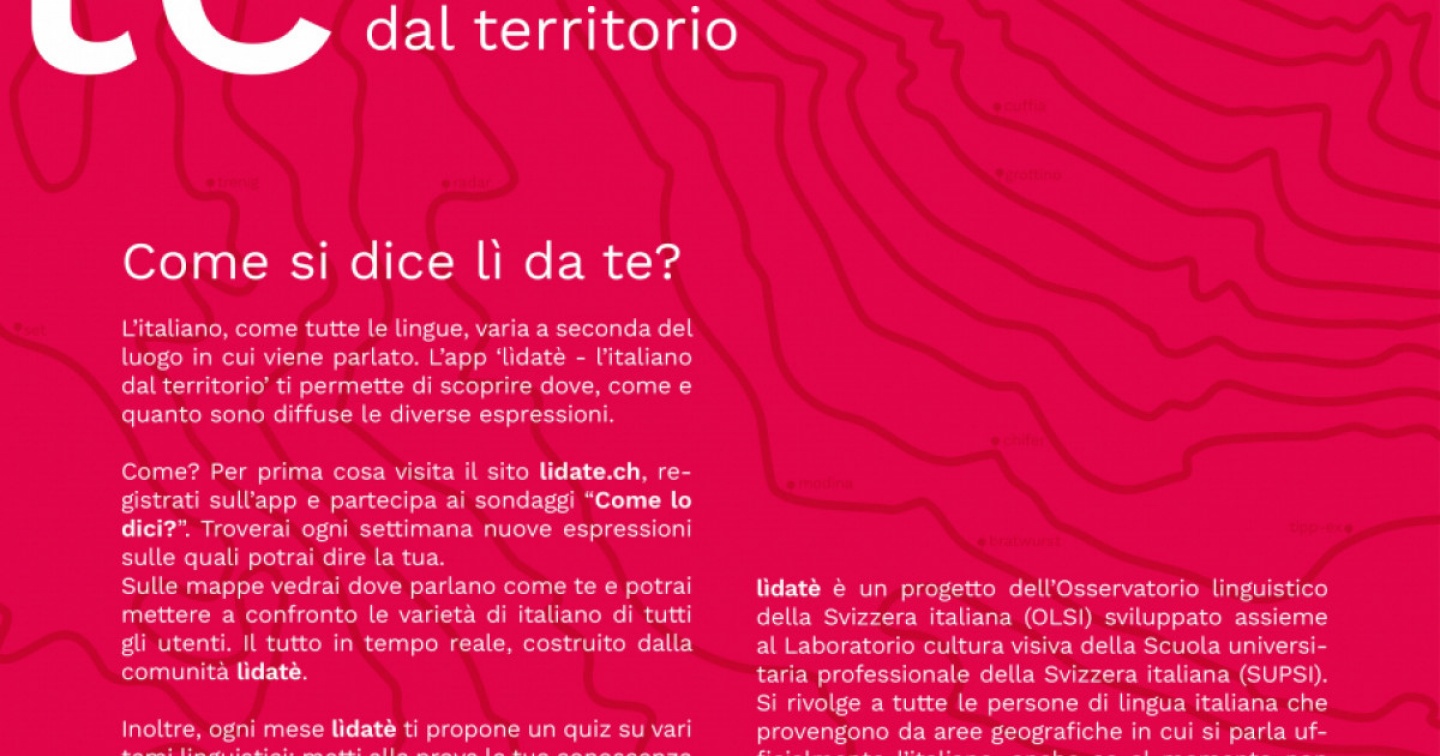 Le lingue cambiano non solo nel tempo ma anche nello spazio. Il pensiero va subito agli “elvetismi”, alle particolarità linguistiche che distinguono l’italiano della Svizzera da quello degli altri territori. Ma il progetto lìdatè (acronimo di “l’italiano dal territorio”), presentato nei giorni scorsi dal Dipartimento dell’educazione, della cultura e dello sport e che si occupa, appunto, di studiare queste variazioni territoriali, guarda oltre. «Dal momento che lavoriamo per l’Osservatorio linguistico della Svizzera italiana abbiamo uno sguardo particolarmente attento sulla varietà svizzera dell’italiano però l’idea è, potenzialmente, coprire tutte le varietà geografiche dell’italofonia» ci spiega la sociolinguista Laura Baranzini che con Matteo Casoni si occupa di lìdatè. «I dati che ci provengono dalla Svizzera italiana e dalle aree di confine dell’Italia settentrionale ci interesseranno particolarmente perché ci permetteranno di tracciare i confini precisi della varietà svizzera dell’italiano, su cui non sappiamo tantissimo. Per alcuni termini il confine corrisponde a quello politico, ma per altri, penso soprattutto a quelli di matrice dialettale, non necessariamente».
