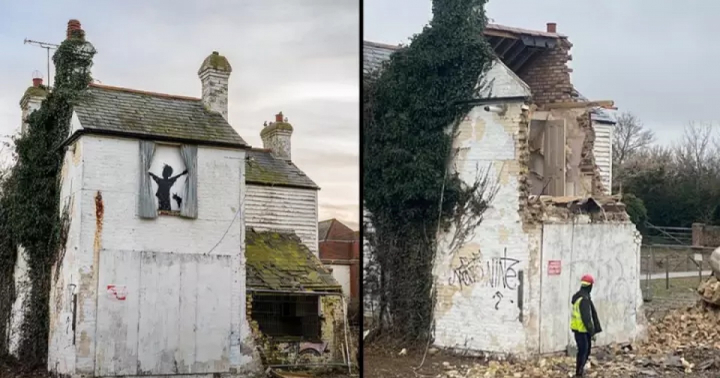 A febbraio, una precedente opera di Banksy, intitolata ‘Mascara’, era pure comparsa su un edificio in via di smantellamento nella zona, in occasione del giorno di San Valentino: su un pezzo di muro preso poi in consegna dall’amministrazione comunale locale per essere trasferito in esposizione nel parco pubblico di Dreamland.