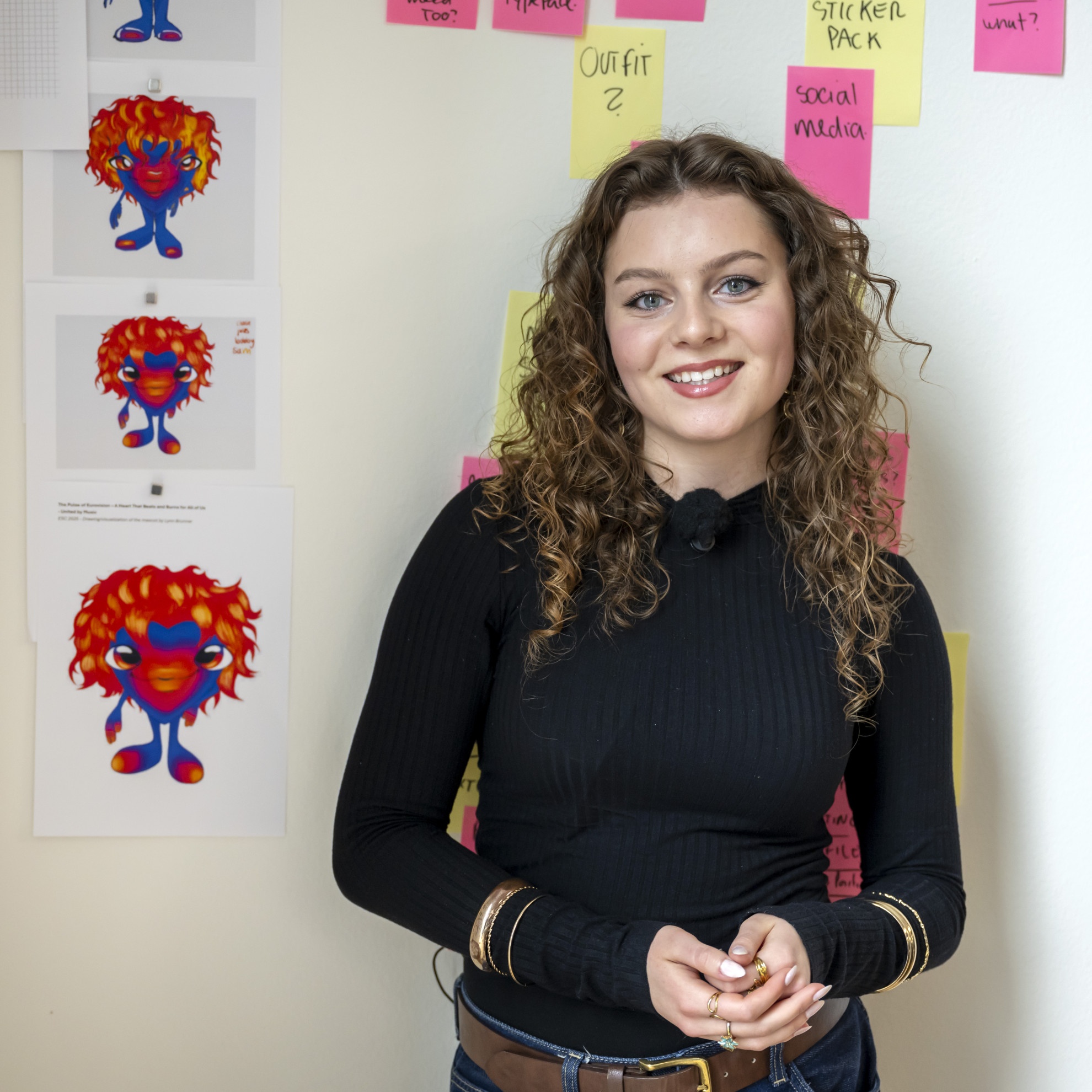 La mascotte dell’Eurovision è una novità assoluta: per la prima volta nella storia dell’Eurovisione, è stato organizzato un concorso per studentesse e studenti per disegnarla. Il progetto si inserisce nel quadro dell’impegno assunto dall’Eurovision 2025, promuovere la collaborazione con talenti emergenti svizzeri. L’idea vincitrice è stata finalizzata a quattro mani da Lynn e Artur Deyneuve (Art Director dell’Esc 2025).