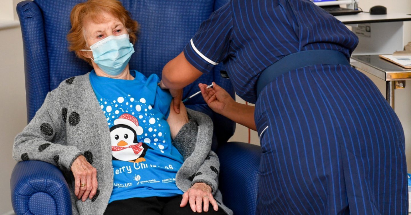 È già una delle immagini-simbolo di questa pandemia: Margaret Keenan che, giacchino di lana sopra una maglietta natalizia, che riceve dall’infermiera May Parsons una dose del vaccino Pfizer/BioNtech. Non è la prima persona al mondo a ricevere un vaccino per il nuovo coronavirus, e considerando anche i volontari che hanno partecipato alla sperimentazione non è neppure la prima a ricevere il vaccino sviluppato dall’azienda biotecnologica tedesca. Ma ugualmente è un simbolo. E come tutti i simboli, tra propaganda, marketing e spirito del tempo rappresenta tante cose: la speranza di un ritorno alla normalità dopo mesi di sacrifici; la fine dell’isolamento delle persone più fragili; il successo dell’integrazione e delle frontiere aperte, con la BioNTech fondata da figli di immigrati turchi; la vittoria della scienza, della tecnica e per alcuni addirittura del capitalismo (!) sulla pandemia.