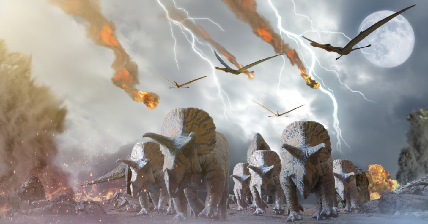L'asteroide che 66 milioni di anni fa cadde sulla Terra provocò l'estinzione del Cretaceo-Paleogene, la quinta della serie di estinzioni di massa avvenute negli ultimi 540 milioni di anni e che cancellò il 60% delle specie esistenti allora.