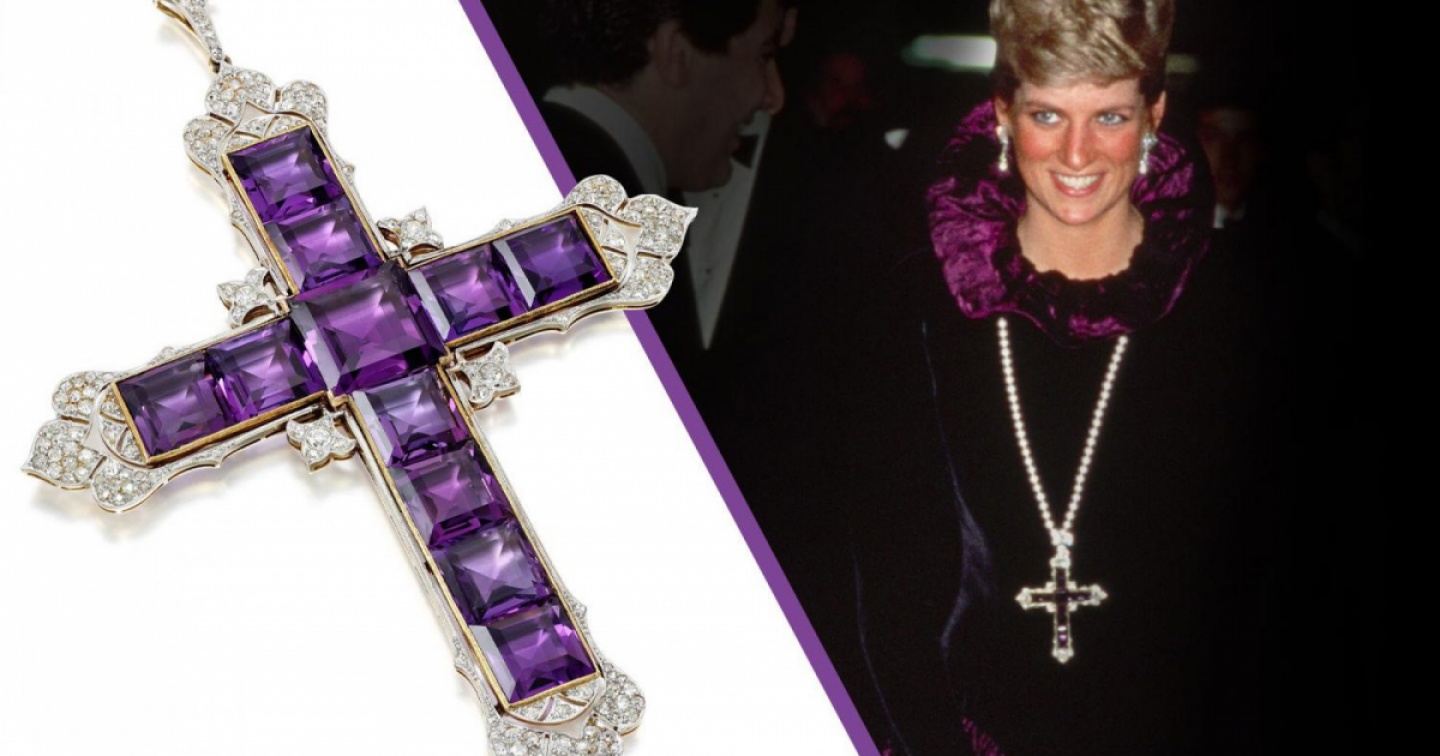 Ex moglie di re Carlo III, morta in un incidente d’auto a Parigi nel 1997, Diana aveva indossato in pubblico il ciondolo con ametiste e diamanti in varie occasioni. Il gioiello, realizzato intorno al 1920 dal gioielliere londinese Garrard, apparteneva all’epoca al suo amico e imprenditore Naim Attallah.