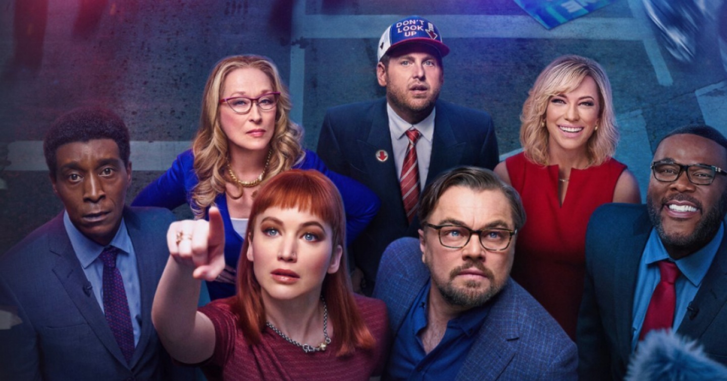 Con una molto poco accademica frangetta rossa, un cognome tipico da commedia di Hollywood e un look da “scendo a fare la spesa”, la dottoranda in astronomia Kate Dibiasky (Jennifer Lawrence) scopre una cometa nuova di pacca; il suo professore Randall Mindy (Leonardo Di Caprio) fa due calcoli complessi e capisce che il corpo celeste largo 9 km, più tardi denominato ‘Cometa Dibiasky’, è diretto verso il pianeta Terra, che colpirà in poco più di sei mesi. L’ipocondriaco Mindy e la risoluta Dibiasky cercano di sottoporre l’imminente fine dell’umanità alla Casa Bianca, ove si recano insieme al funzionario governativo addetto ai pericoli del cielo Clayton ‘Teddy’ Oglethorpe (Rob Morgan), ma la lunga attesa nell’anticamera dello Studio Ovale è un’anticipazione dell’indifferenza che mostrerà verso il problema la presidente degli Stati Uniti Janie Orlean (una trumpiana Meryl Streep), in altre più pruriginose faccende affaccendata.