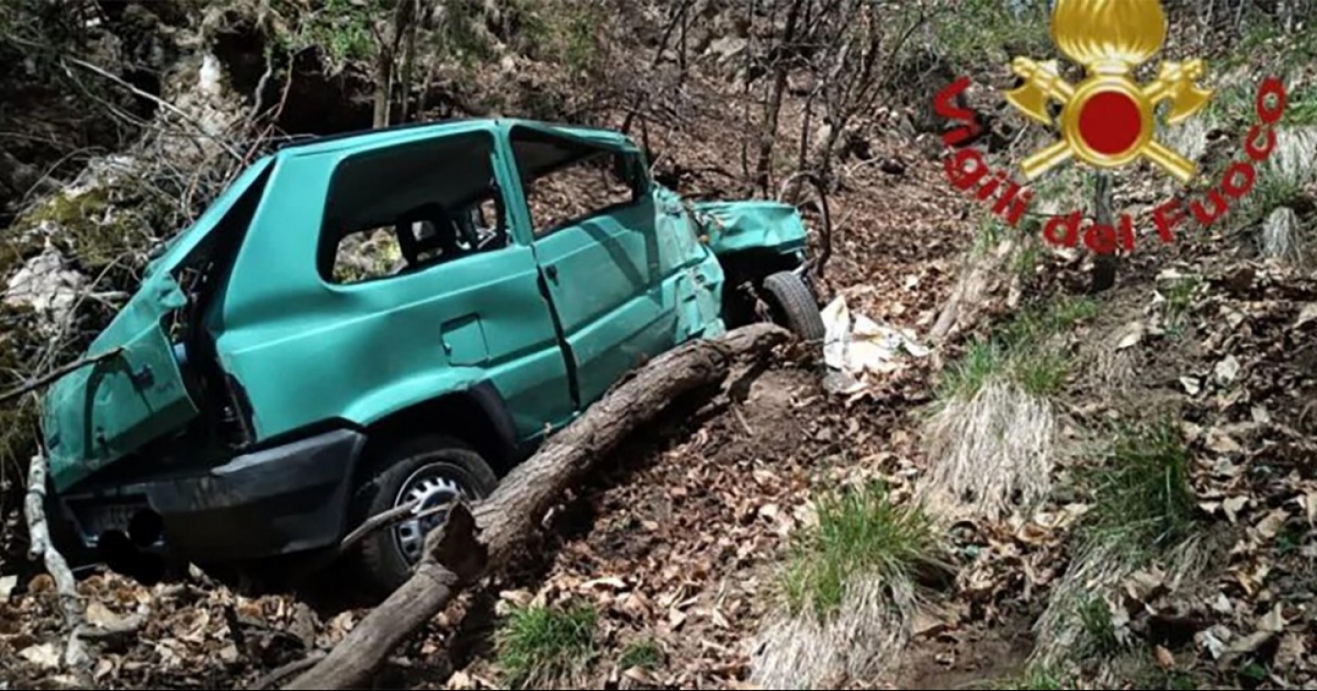 La Fiat Panda caduta nel dirupo (Vuigili del fuoco)