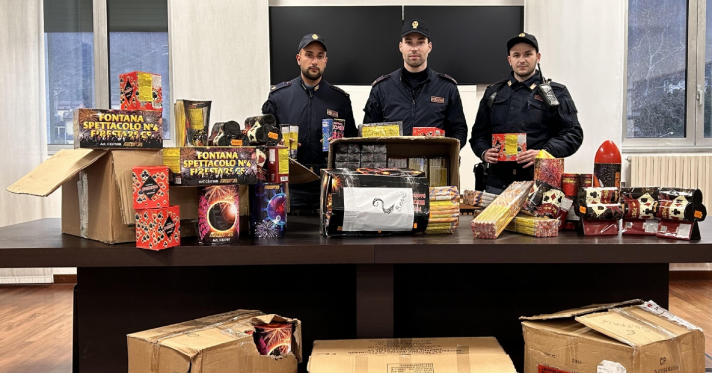 In tale ambito la Divisione di Polizia Amministrativa della Questura, nella giornata del 27 dicembre, ha denunciato in stato di libertà il titolare di un esercizio commerciale di Beregazzo con Figliaro (Como), un cittadino cinese di 31 anni residente in provincia di Modena, per violazione della normativa che prevede l’adozione di cautele per la fabbricazione, l’introduzione nello Stato, la custodia in deposito, la vendita o il trasporto di sostanze esplodenti.