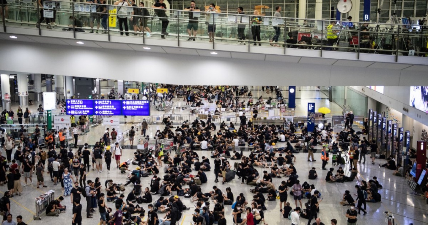 “Scusate per l'inconveniente, ma stiamo lottando per la sopravvivenza”. È una battaglia con cartelli, slogan e scritte sui muri, quella di 5mila manifestanti che hanno deciso di colpire uno dei centri nevralgici di Hong Kong: l'aeroporto, tra i più importanti al mondo, che è stato costretto a cancellare tutti gli arrivi e le partenze della giornata, la quarta e più dura del sit-in allo scalo per protestare contro le autorità locali e il governo cinese, in una crisi sempre più tesa.