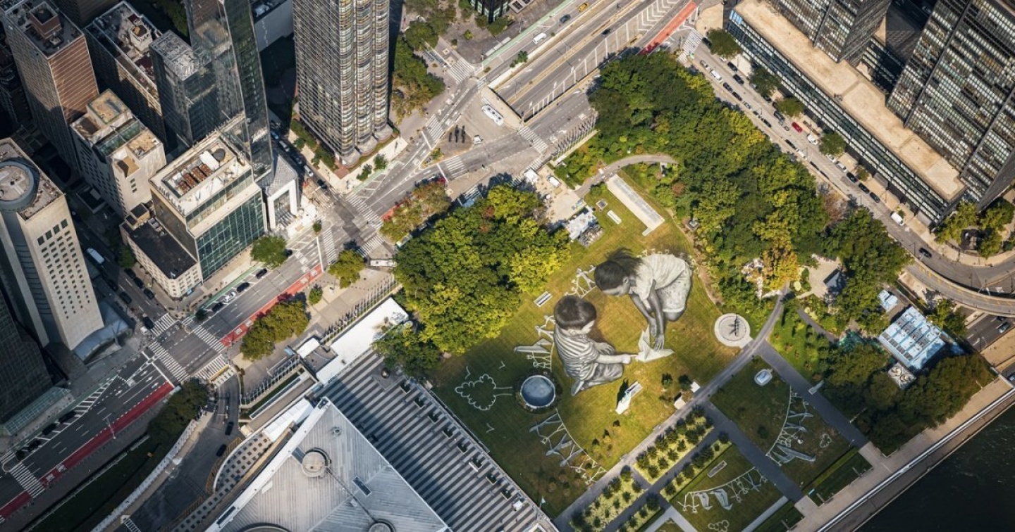 L’affresco ritrae due bambini intenti a costruire il mondo del futuro e rappresenta la partecipazione dei giovani al processo di riforma delle Nazioni Unite. Il Programma avviato da Guterres, volto a conferire nuovo slancio alla solidarietà internazionale, sarà discusso in occasione della 76esima Assemblea generale dell’ONU, i cui lavori sono cominciati il 14 settembre.