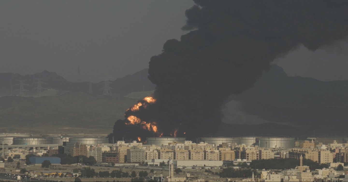 Gigantesco incendio in un sito petrolifero nella città sede nel weekend del GP di F1. L’attacco rivendicato dai ribelli Huthi dello Yemen