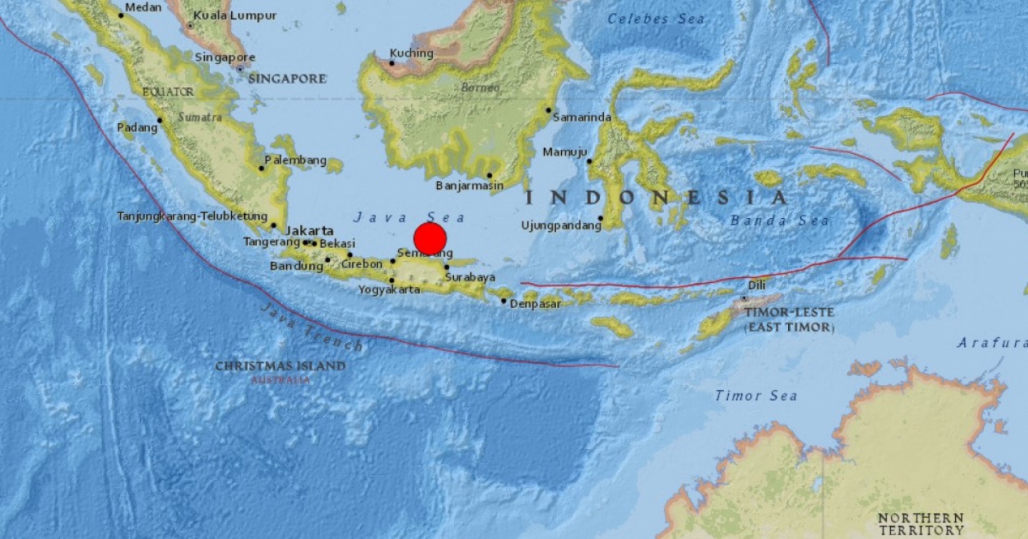 L'epicentro del sisma è stato localizzato a 96 chilometri a nord di Tuban, lungo la costa settentrionale dell'isola di Giava, a una profondità di 594 chilometri. Non si segnala per ora alcun allarme tsunami.