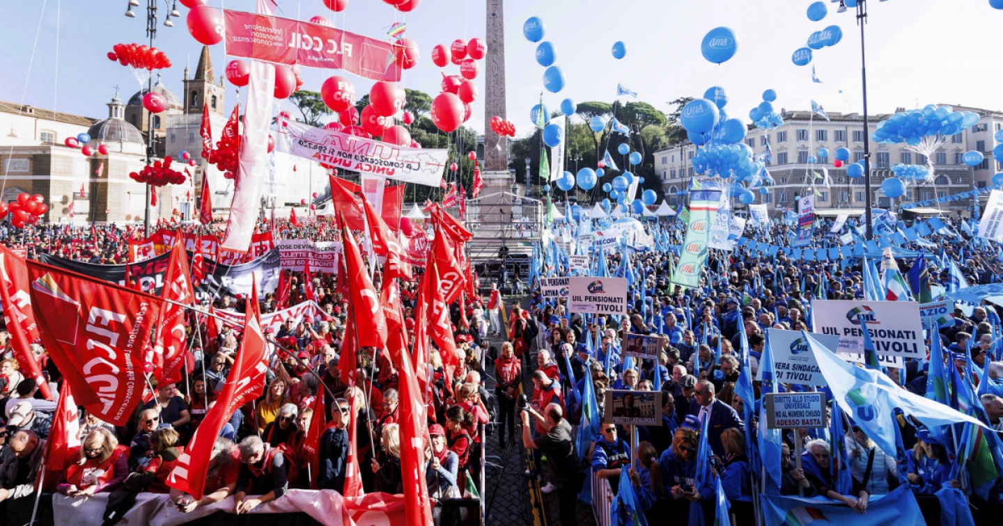 “Il governo sta portando il Paese a sbattere e noi non lo permetteremo”, ha incalzato il numero uno della Cgil, Maurizio Landini. “Questa piazza è una risposta di democrazia a chi fa il bullo istituzionale”, ha attaccato a sua volta il numero uno della Uil, Pierpaolo Bombardieri. Sul palco i due leader sindacali hanno assicurato che andranno avanti finché il governo non li avrà ascoltati e non avranno ottenuto risultati.