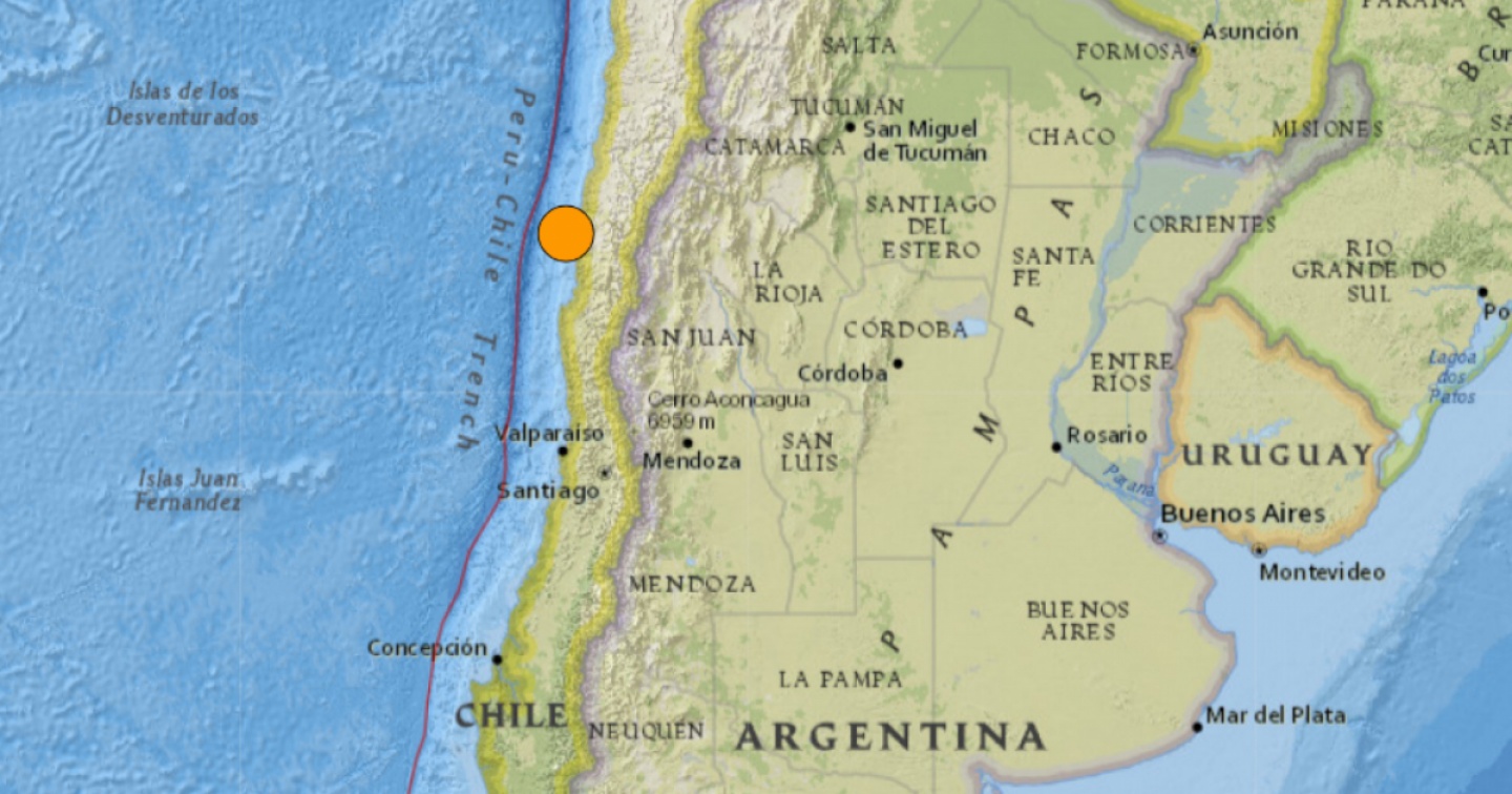 L'ipocentro del terremoto, di magnitudo 5,9, è stato localizzato a una profondità di 10 km, nella regione di Atacama