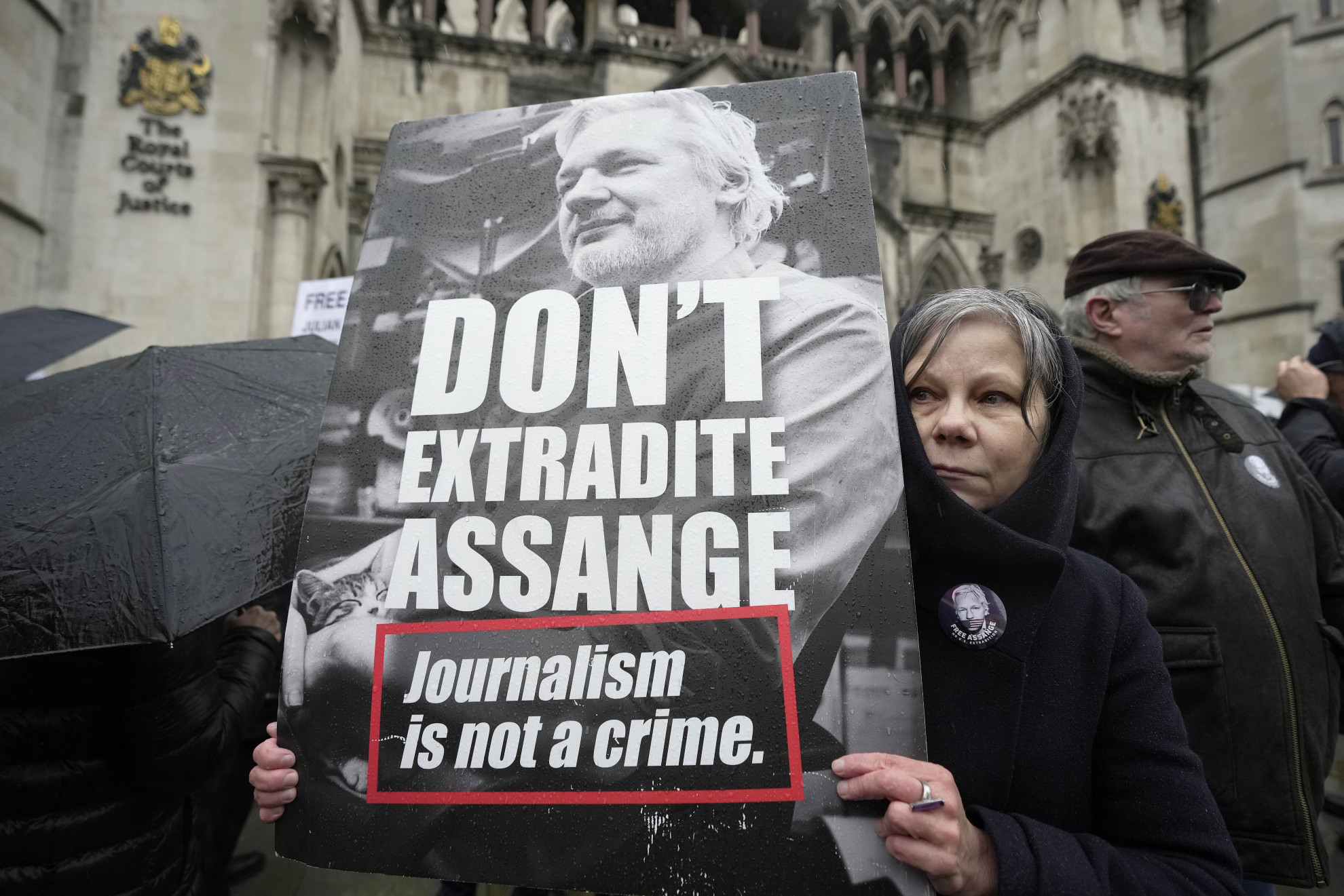 Keystone‘Non estradate Assange’Toni fatti propri fra gli altri da testate e organizzazioni giornalistiche come Reporter Senza Frontiere, da Amnesty International, da esperti dell'Onu e dall'attuale governo laburista di Canberra di Anthony Albanese. E che tuttavia non è detto affatto possano bastare a convincere i giudici Sharp e Johnson, titolari dell'ultima parola per conto dell'Alta Corte londinese sullo sfondo di un percorso giudiziario finora largamente impermeabile alle ragioni della difesa.