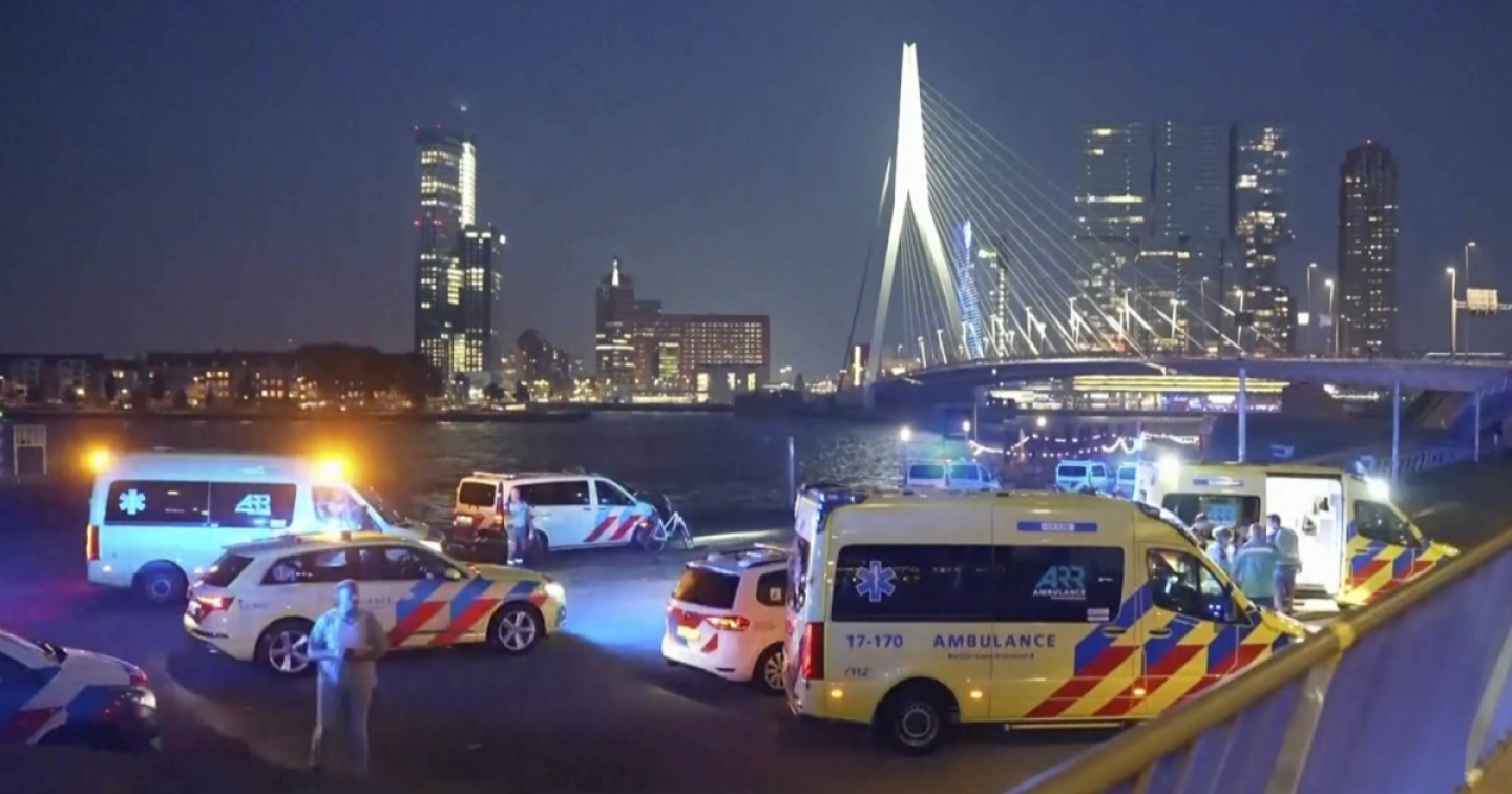 Testimoni hanno affermato che il sospettato ha gridato "Allah akbar" (Dio è il più grande) durante l'attacco. Un insegnante di ginnastica che stava tenendo una lezione vicino al ponte Erasmus, dove è avvenuto l'episodio, ha detto all'emittente di aver tentato di fermare l'aggressione. "Ho visto un uomo con due lunghi coltelli che accoltellava un giovane", ha detto. "Alla fine sono riuscito a fermarlo".