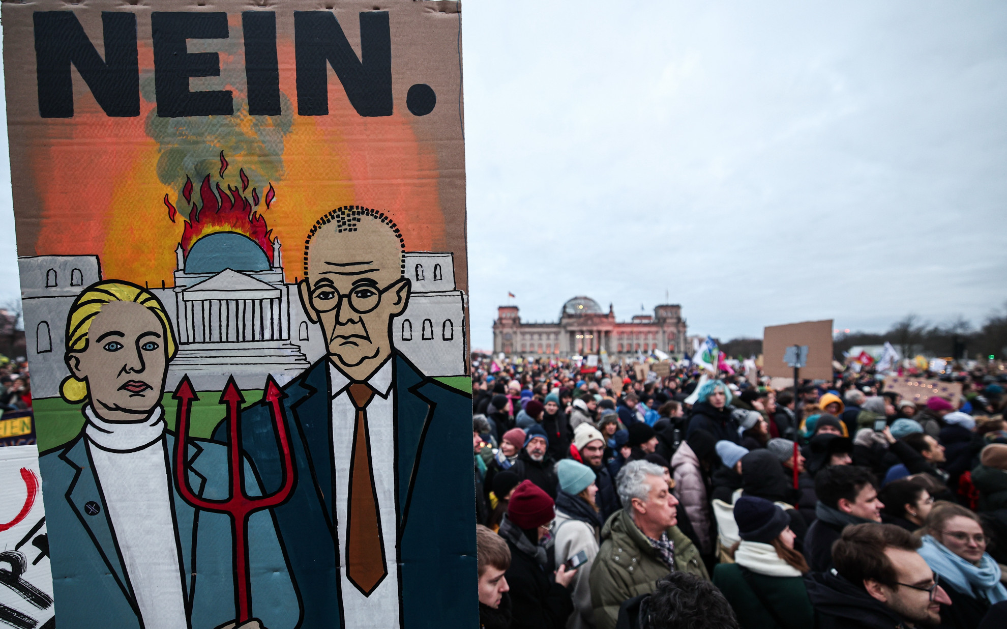 KeystoneCartello anti-Weidel e anti-MerzEd è Robert Habeck a dire alla Welt che, violando la sua parola due volte, "Merz si è squalificato come cancelliere". Tradotto: i partiti potrebbero tornare a collaborare, ma non con l'ex avvocato milionario alla guida dell'Unione. Slogan e cartelli della manifestazione berlinese chiariscono meglio di tante parole la profonda preoccupazione dei tedeschi: "Mancano 5 minuti al '33!" "Merz come von Papen", e cioè il presidente che aprì a Hitler. "Fritz dai ascolto a Mutti!", il suggerimento che svetta nella folla, infierendo sull'inaudita presa di distanze dell'ex cancelliera, che nei giorni scorsi ha criticato il leader del suo stesso partito, rimproverandogli di "aver sbagliato" a collaborare con Alternative fuer Deutschland. "La Cdu resta un partito democratico. Invece Afd è il partito dell'odio", ha detto prendendo la parola in piazza della Repubblica Michel Friedmann, un celebre giornalista, tesserato, che ha annunciato di voler uscire dalla Cdu. "Il partito dell'odio è uno dei problemi fondamentali di questo Paese. Non sta sul terreno della democrazia. Noi siamo la maggioranza, dobbiamo agire".