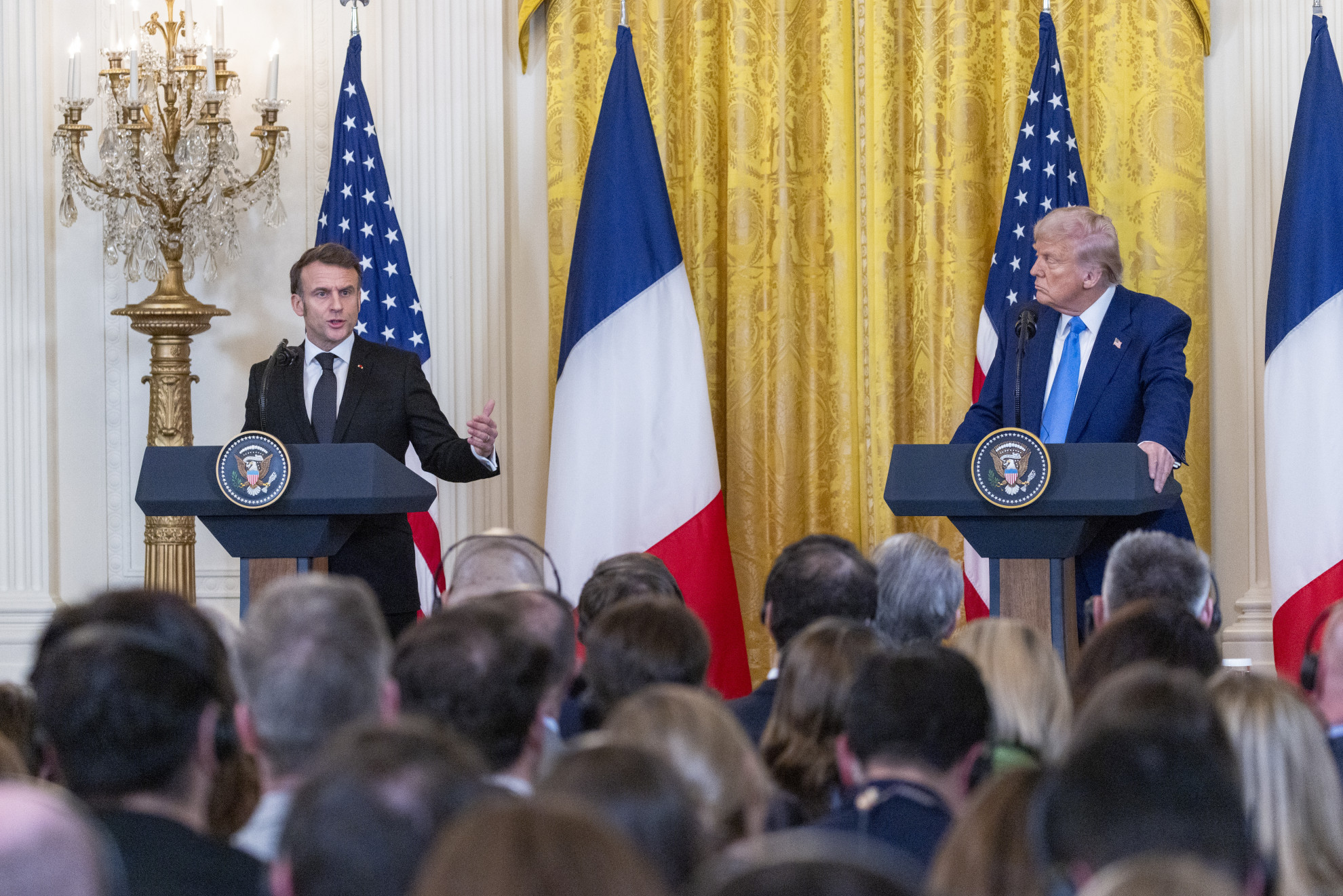 KeystoneLa conferenza stampa congiuntaQuanto al ruolo dell'Europa nel processo di pace in Ucraina, Macron ha portato alla Casa Bianca il piano concordato con Keir Starmer, in arrivo a Washington giovedì, che prevede 30’000 peacekeeper europei dispiegati nel Paese a garanzia della sicurezza. Un piano ambizioso che non può funzionare senza un "forte" coinvolgimento degli Stati Uniti che il presidente francese ha chiesto a Trump durante il loro colloquio bilaterale senza tuttavia avere nessun tipo di riscontro. "L'Europa darà garanzie di sicurezza all'Ucraina", ha invece sottolineato il commander-in-chief dicendosi convinto che il Cremlino sia pronto ad accettare la presenza di militari europei per garantire la pace. A dimostrazione che - al di là di sorrisi, strette di mano, battute sulle "bellissime mogli" e su quanto sia musicale il francese - il colloquio tra i due leader è stato teso, la brusca interruzione da parte di Macron nei confronti di Trump quando quest'ultimo parlava dei prestiti all'Ucraina. "L'Europa si sta riprendendo i suoi soldi", ha detto l'americano prima di essere bloccato dal francese che gli ha posato una mano sul braccio. "A dire il vero, abbiamo pagato il 60% dello sforzo totale in prestiti, garanzie, sovvenzioni", lo ha corretto Macron, precisando che i 230 miliardi di dollari in beni russi congelati in Europa "non ci appartengono".