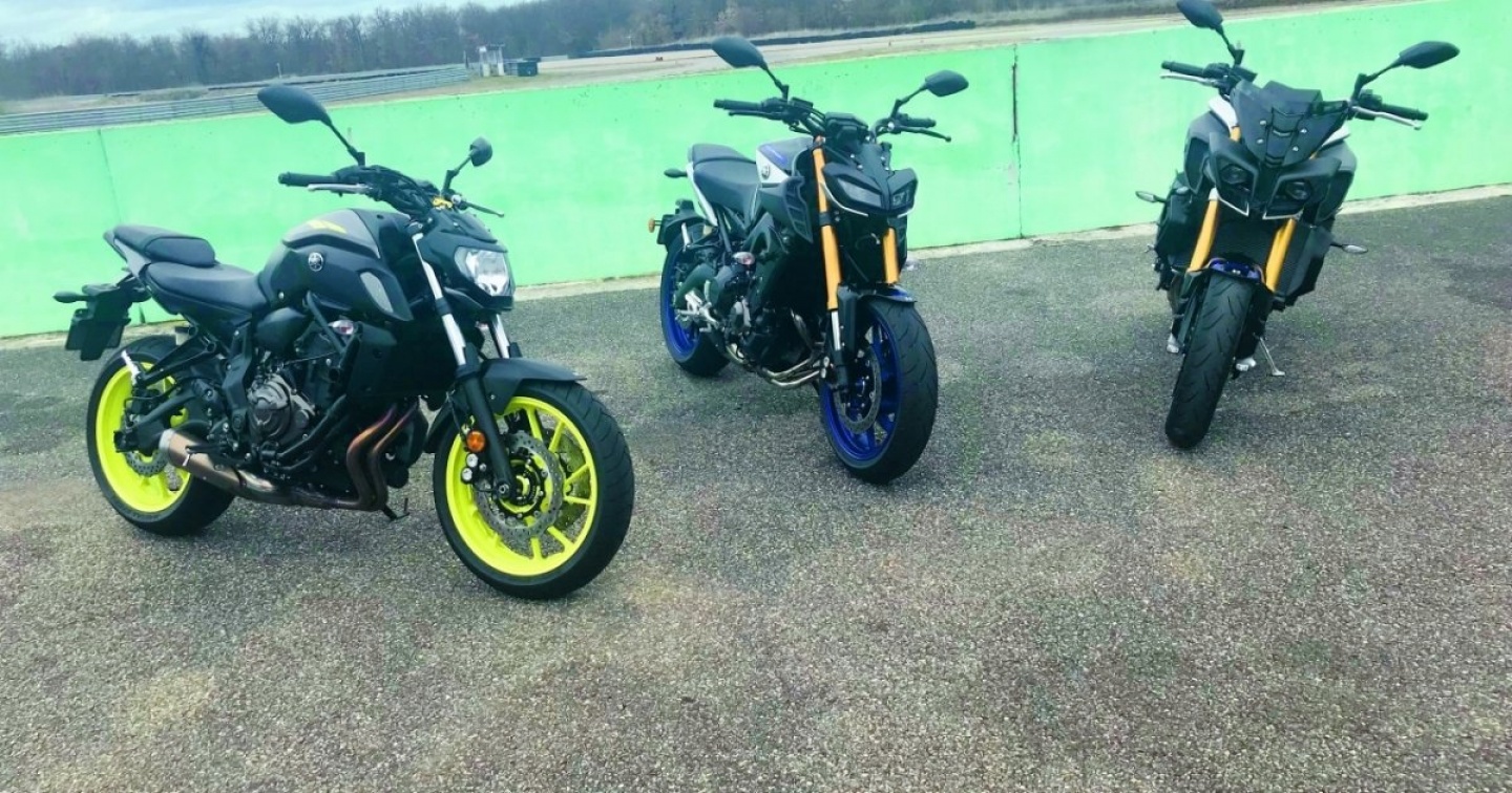 Cosa c’è di meglio in un test che trovarsi gran parte dei modelli che ti attendono fuori dal circuito per essere testati, ringraziamo quindi l’importatore per la Svizzera Hostettler che tutti gli anni nel mese di marzo organizza questo evento. Detto questo, abbiamo provato un po’ tutti i modelli ma poi ci siamo concentrati in particolare sulla serie MT. L’attuale gamma di naked è costituita a partire da 125 fino a 1000 cc di cilindrata per dare la possibilità ad ogni appassionato di sperimentare le emozioni di guida abbinate a un look accattivante che la serie MT è in grado di esprimere. Quello che trasmette alla guida la serie MT ha un unico comune denominatore, piacere di guida assoluto. La ciclistica neutra e comunicativa dei vari modelli si rivela agile nel misto ma stabile e rassicurante nel veloce. L’elasticità e le prestazioni dei propulsori sono un ulteriore riferimento nelle varie cilindrate, ci riferiamo in particolare alla bicilindrica MT-07, alla tre cilindri MT-09, disponibile anche nella nuova versione più performante SP. La quattro cilindri MT-10, la più potente della gamma, deriva dalla R1, è una Hyper Naked di 160 cv in grado di soddisfare anche “i palati” più esigenti. Sono solo due i modelli che non abbiamo potuto testare perché non ancora disponibili, una è la già citata tre ruote Niken e l’altra è la Sport Tourer Tracer 900 che disporrà anche di una versione GT. La nuova Tracer verrà presentata a metà aprile, quindi vi sveleremo le nostre impressioni dopo il Test.
