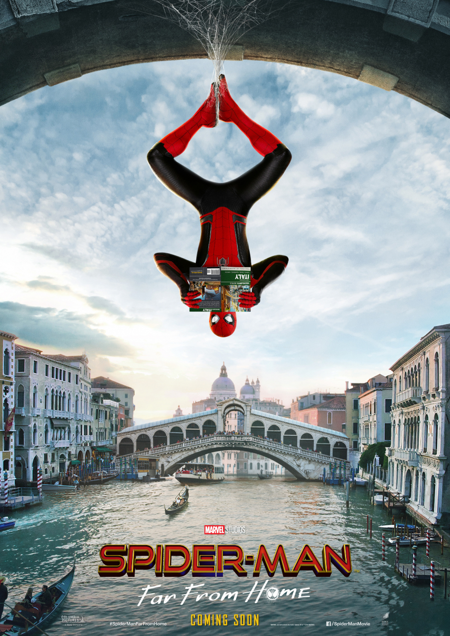 Ora, in questa sorta di Grand Tour attraverso l'Europa Spider-man passerà – a giudicare dai poster presentati in questi giorni – da Londra (con il Palazzo di Westminster visto dal London Eye), da Berlino (con la Porta di Brandeburgo) e da Venezia. E proprio qui c'è un problema: nel poster abbiamo l'uomo ragno a testa in giù in mezzo a Canal Grande con sullo sfondo il Ponte di Rialto e la Basilica di Santa Maria della salute.