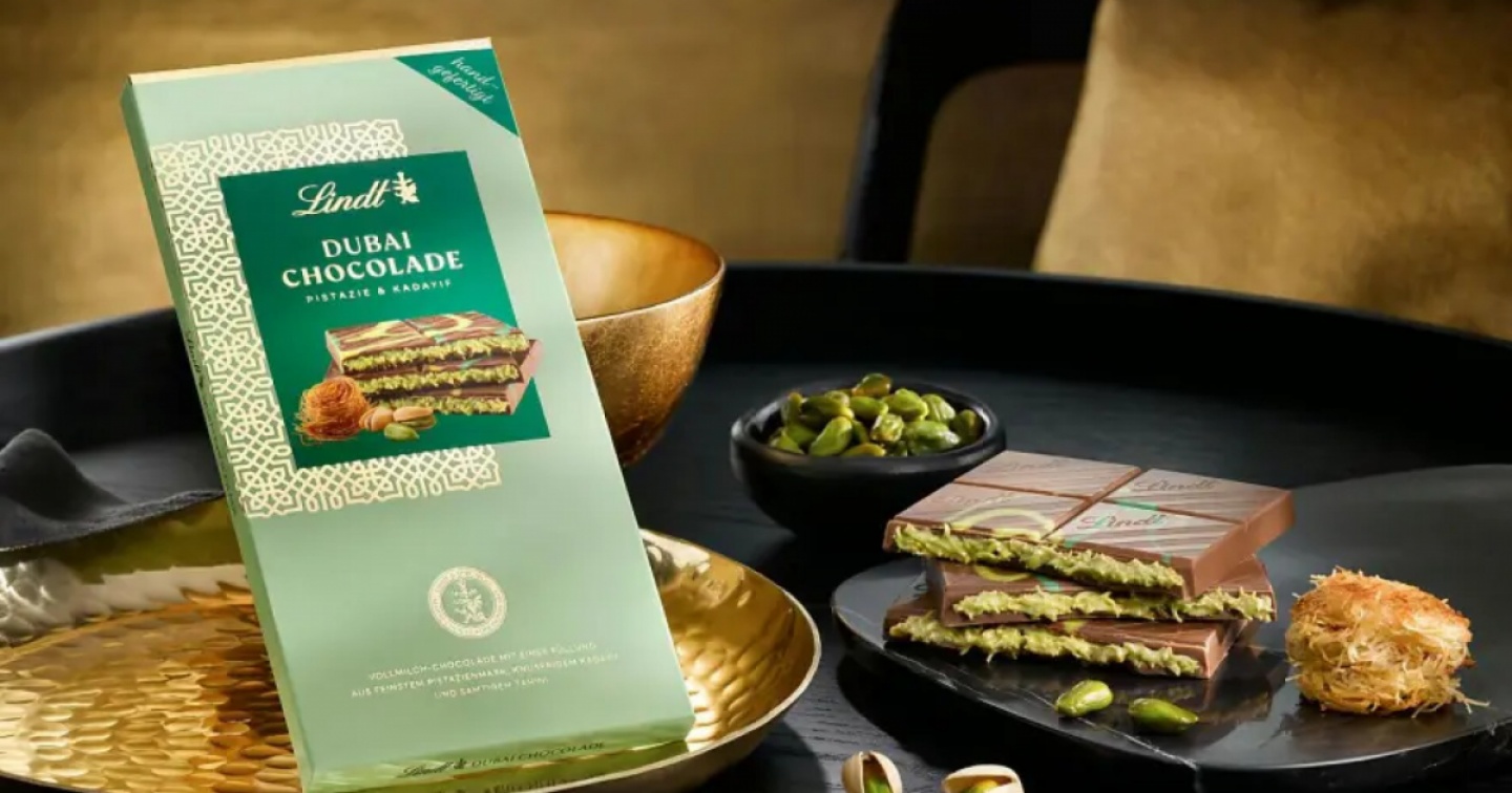 Il cioccolato di Dubai, caratterizzato da una farcitura di pistacchio, si basa su una creazione sviluppata per la prima volta nel 2021 dall'artista specializzata Sarah Hamouda. Il prodotto è diventato virale in particolare grazie alla promozione da parte di influencer.