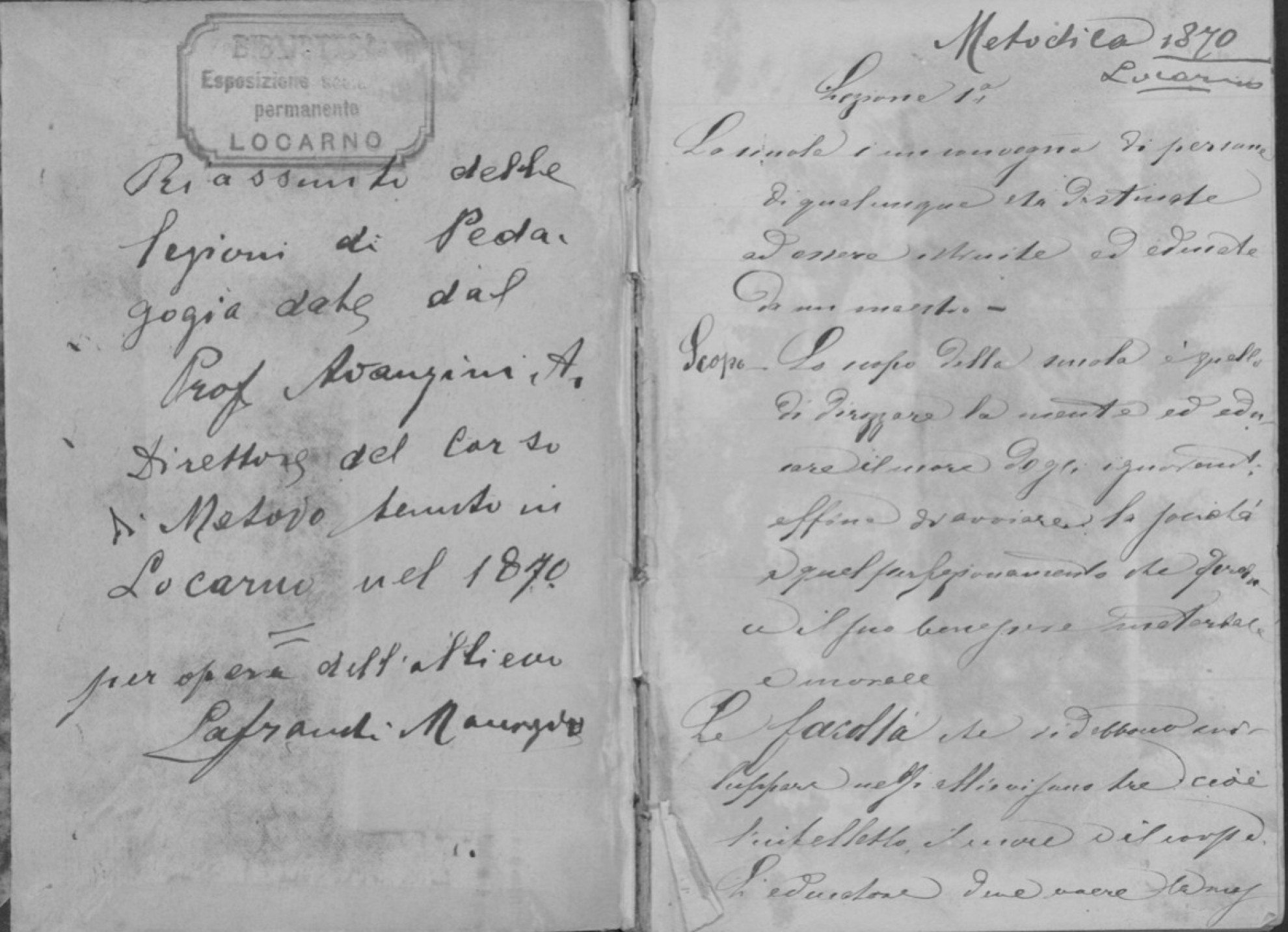 Per tornare al Franscini, è noto che organizzò, dieci anni dopo aver scritto il brano citato, i primi corsi di metodica per docenti, organizzati secondo il modello di formazione già in vigore nel Lombardo-Veneto austriaco. Tenuti durante i mesi estivi, fortemente incentrati sul curricolo di base (leggere, scrivere, far di conto) e accompagnati da esercitazioni pratiche, questi corsi erano per molti docenti la formazione a una professione che già esercitavano (come succede anche oggi) e il superamento dell’esame dava loro l’agognato attestato delle capacità professionali: ma non di rado sugli attestati troviamo l’indicazione che il candidato, prima di diventare eleggibile come titolare, avrebbe dovuto "certificare" (come diremmo oggi) alcuni anni di pratica sotto la guida di un collega più esperto.