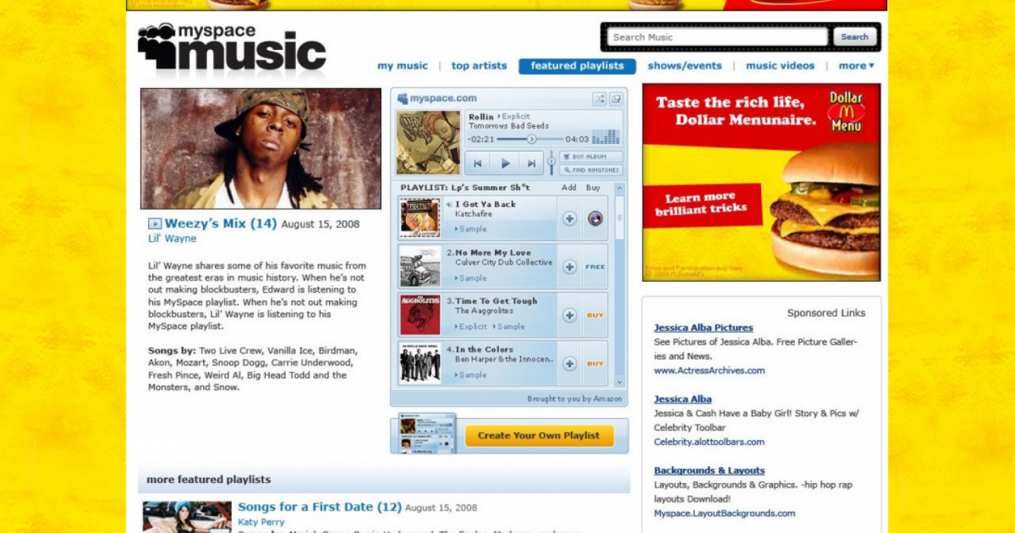 A livello culturale, il punto più alto viene raggiunto quando i Rem decisero di pubblicare su MySpace il loro nuovo album, Around the Sun, nel 2004. Oggi MySpace è un aggregatore di notizie sul mondo della musica, fermo a marzo del 2022, dopo la perdita, nel 2019, di oltre 50 milioni di brani pubblicati da 14 milioni di artisti. Tra questi, c'erano i primi passi di Lily Allen e degli Arctic Monkeys, esponenti della "MySpace Generation" emersa alla metà dei duemila.