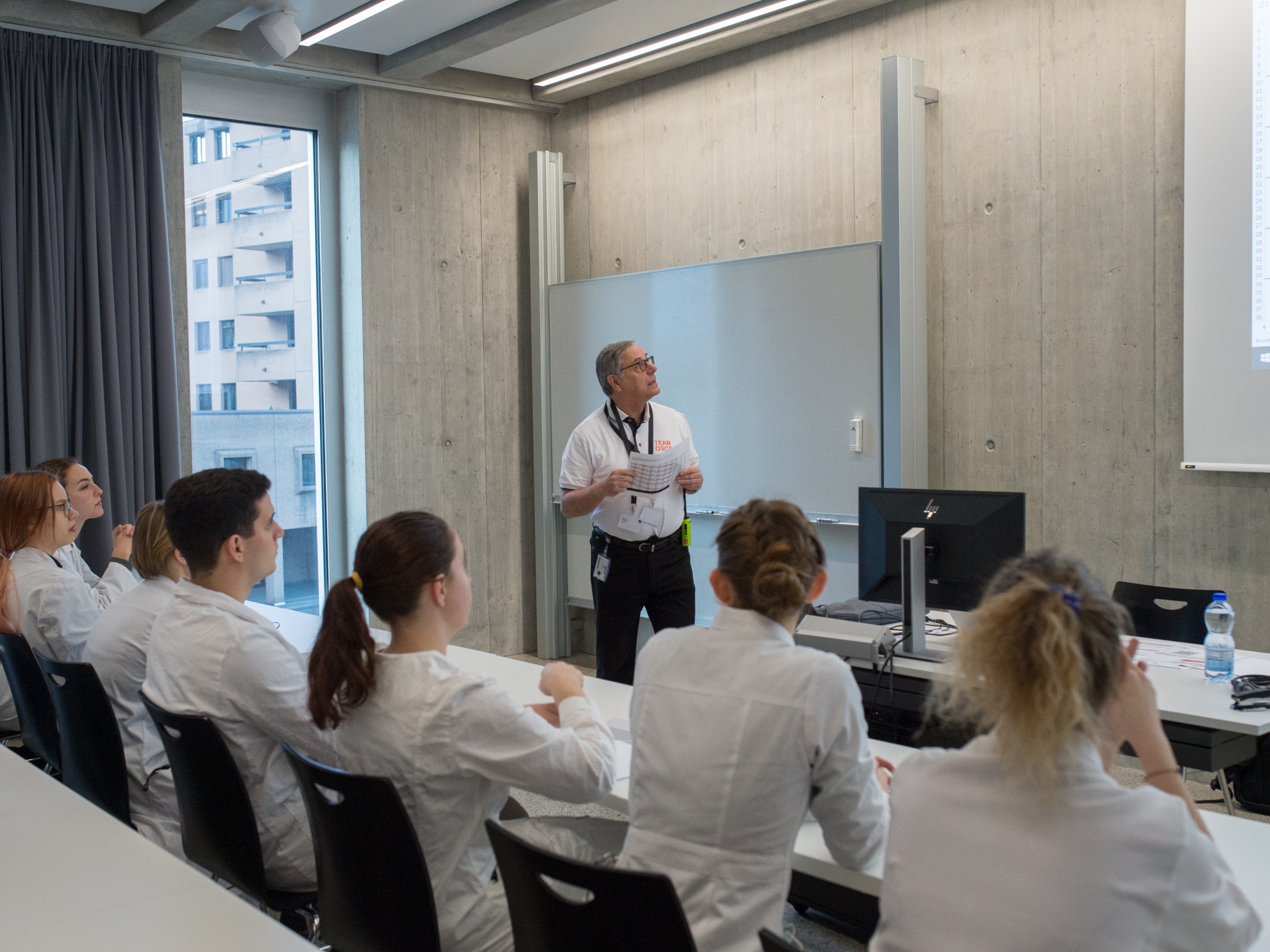 Dunque, torniamo al fischietto arancione o, meglio, al gong elettronico. Suonerà il 4 settembre esattamente alle 9. I 47 studenti dell’Usi verranno divisi in due gruppi: uno la mattina e un altro il pomeriggio (sempre in contemporanea con gli altri atenei svizzeri). I due gruppi non potranno mai venire a contatto, quel giorno. Nel Campus Est lo staff organizzativo, molto numeroso e ricco di specialisti, allestirà 12 finti ambulatori, ognuno con un lettino per le visite, più tutte le altre attrezzature mediche necessarie. In ogni ambulatorio, naturalmente, ci sarà un paziente (o, meglio, un paziente simulato), più un esaminatore. Gli studenti avranno esattamente 13 minuti per ogni paziente, più 2 minuti iniziali per leggere il “compito” (una descrizione del problema), all’ingresso dell’ambulatorio, in un’apposita teca. Ogni quarto d’ora il gong suonerà e gli studenti dovranno passare nella postazione successiva, anche se non saranno stati in grado di ultimare la visita.