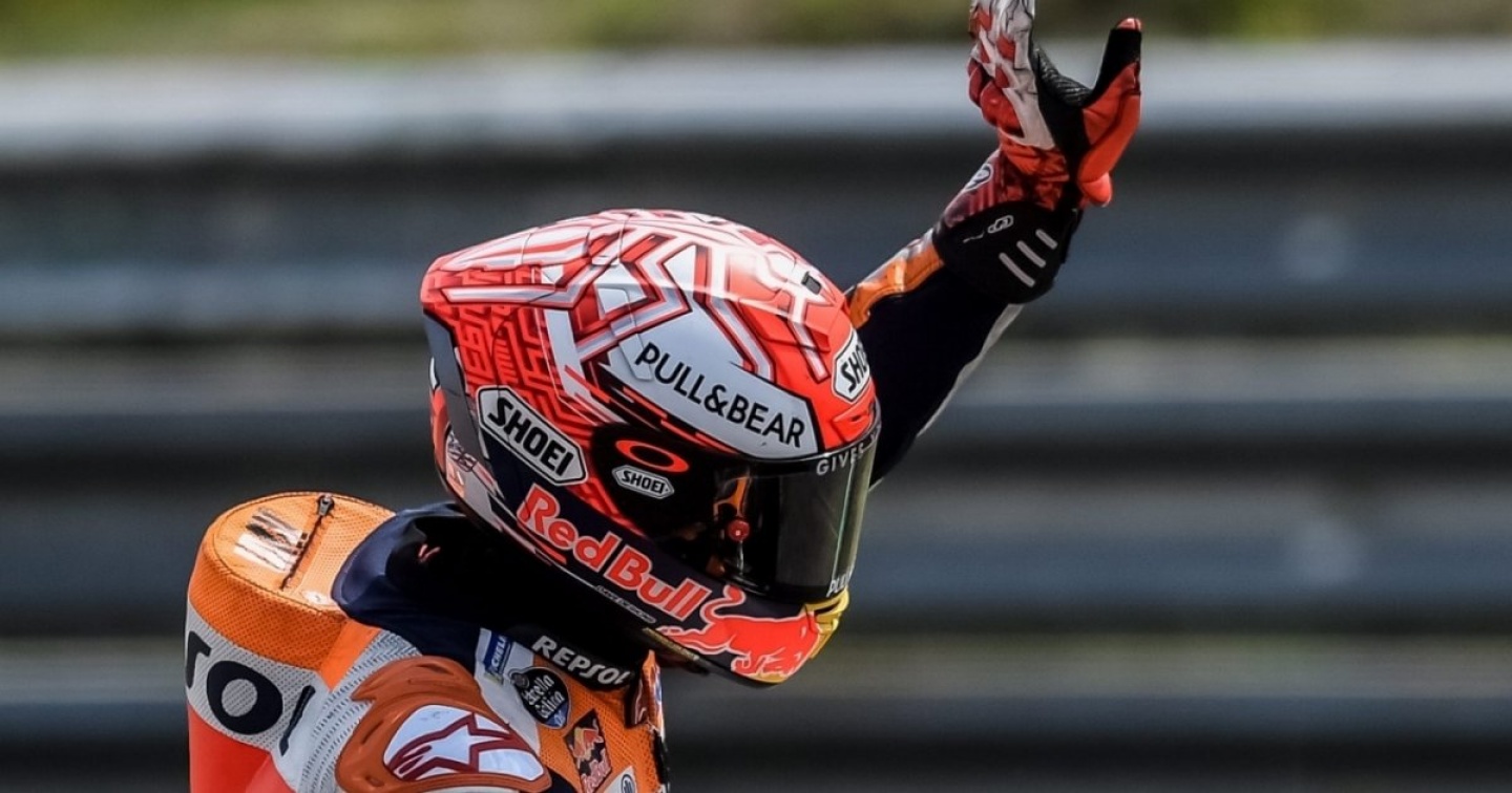 Ennesimo trionfo dell'iberico sul tracciato del Sachsering. Alle spalle della sua Honda le Yamaha di Valentino Rossi e Maverick Vinales