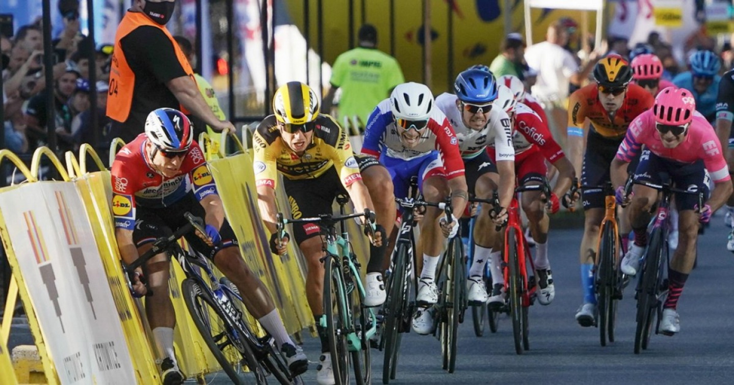 Intanto l'ecuadoriano dell'Ineos Richard Carapaz ha conquistato la terza tappa (caratterizzata da un'altra brutta caduta, del francese Delage, portato in ospedale), indossando allo stesso tempo la maglia di leader.