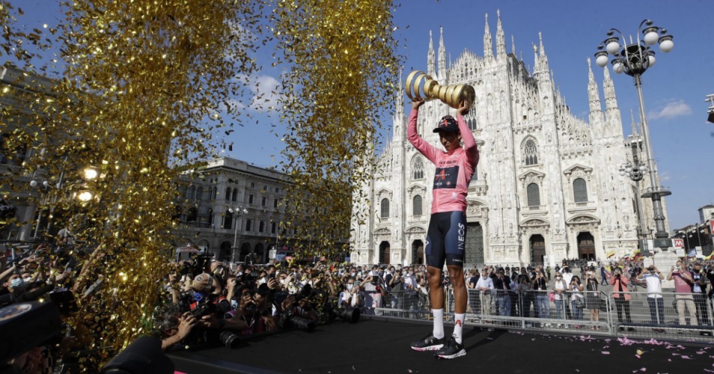 Egan Bernal ha vinto l'edizione 104 del Giro d'Italia. Il colombiano della Ineos succede nell'albo d'oro al compagno di squadra Tao Geoghegan Hart e fa sua la seconda grande corsa a tappe dopo il Tour de France 2019. Nell'ultima frazione, una cronometro di 30,3 km tra Senago e Milano vinta dall'italiano FIlippo Ganna, Bernal ha chiuso al 24º posto con un ritardo di 1’53” da Ganna. Il suo principale avversario in classifica generale, Damiamo Caruso, trionfatore della frazione che sabato ha portato da Verbania all'Alpe Motta, attraverso il Ticino, la Mesolcina, il San Bernardino e lo Spluga, gli ha rosicchiato 30”, ma non ha certo potuto recuperare l'intero svantaggio. Si è comunque assicurato un'inattesa seconda posizione a 1’29” dalla maglia rosa. Sul podio anche il britannico Simon Yates, finito in 55º rango a 2’45”, ma comunque in grado di difendere il terzo posto dall'assalto del russo Vlasov e del portoghese Almeida, ottimo quinto della cronometro.