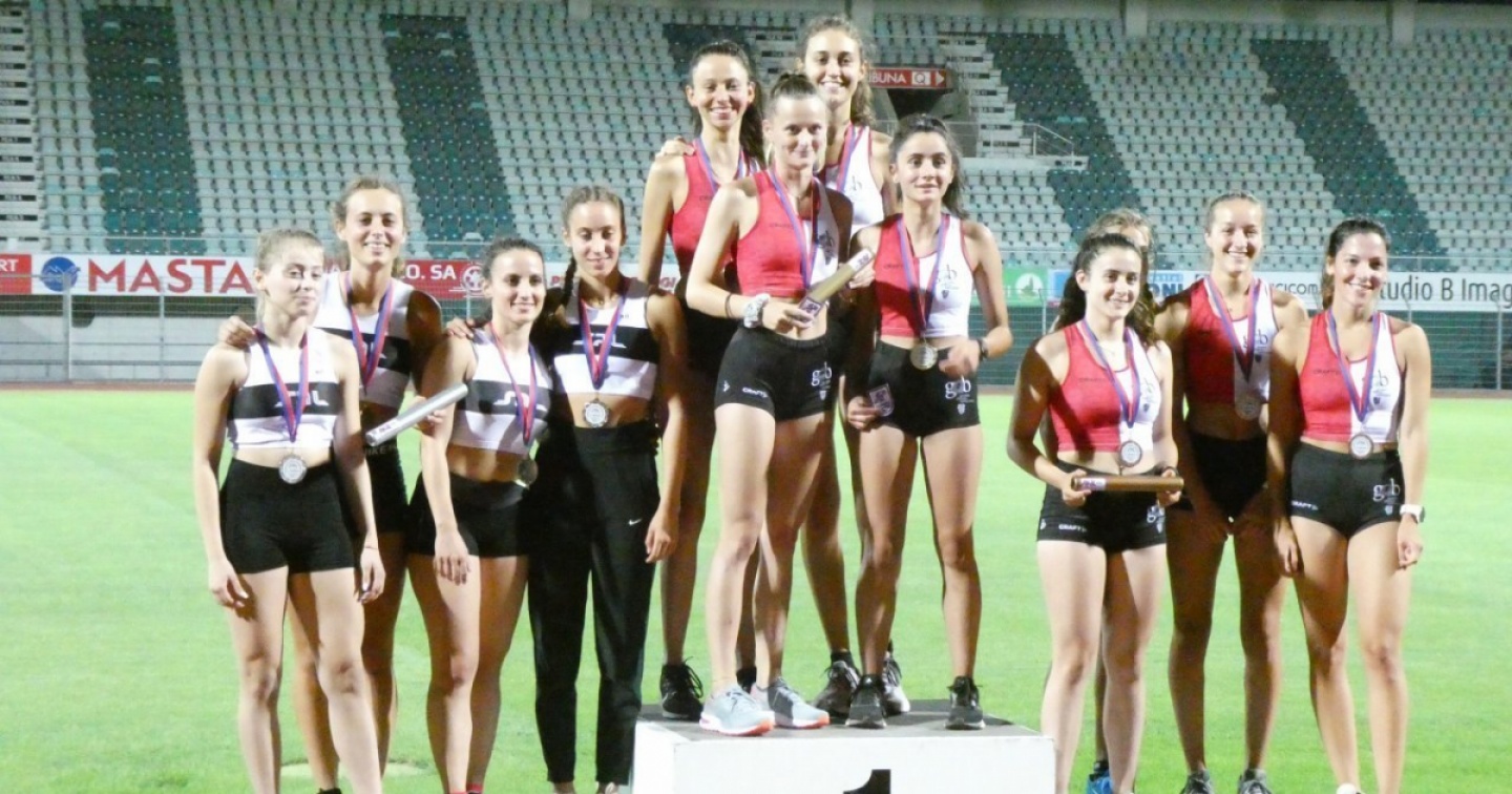 Nella 4x100 femminile, con 8 squadre al via, le cose migliori si sono viste nella semifinale con Fg Malcantone e Usc (50”04 e 50”10) appena sopra la barriera dei 50”. In finale alcuni cambi meno puliti e quattro squadre raccolte in 22 centesimi. Il finale travolgente della campionessa svizzera dei 200 Desirée Regazzoni, lanciata da Lia Patriarca, Gaia Lorenzetti, Caterina Wolgemuth, regala alle Fgm il titolo in 50”23.