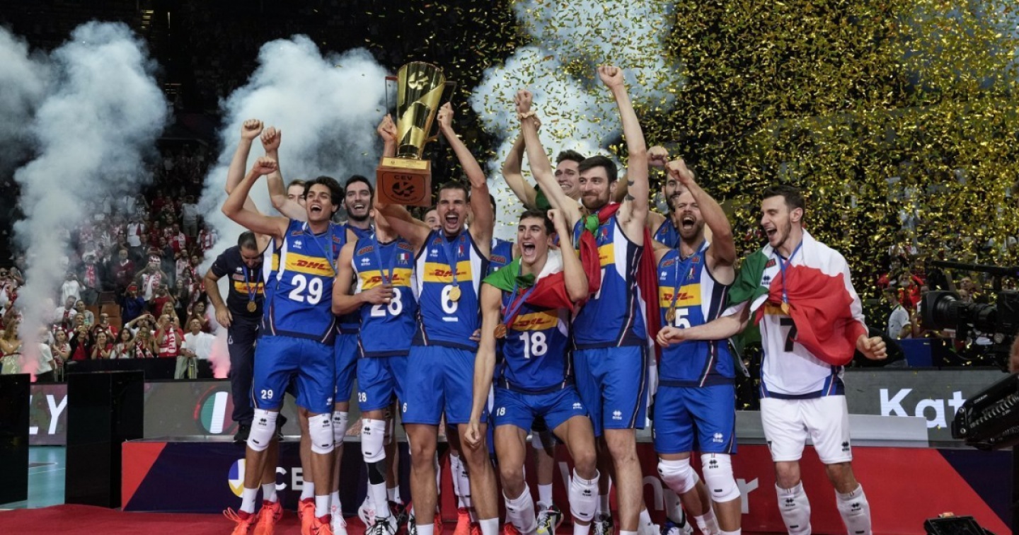 L’Italia della pallavolo è sul tetto d’Europa. Dopo il successo della nazionale femminile anche la squadra maschile, guidata da Ferdinando De Giorgi ha conquistato ieri il titolo continentale battendo in una finale tiratissima la Slovenia 3-2. È il settimo titolo continentale per la nazionale azzurra, che torna campione d’Europa come non accadeva dal 2005. Finale soffertissima vinta al tie break contro una Slovenia fortissima, e che perde la terza finale degli ultimi quattro Europei. È la prima volta nella storia del volley italiano che azzurri e azzurre s’impongono nella stessa edizione. Allo stesso modo è la prima volta che la Nazionale Italiana chiude imbattuta la competizione.