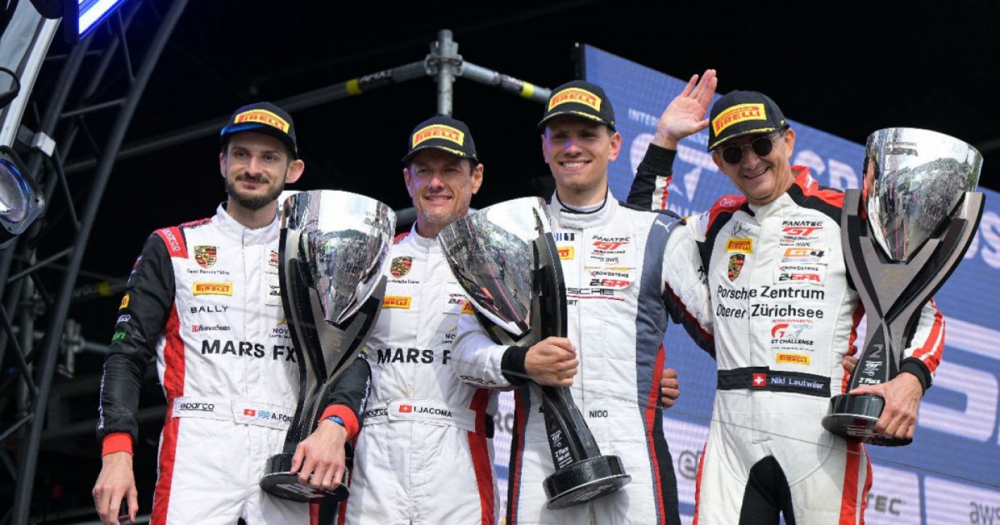 Centri Porsche Ticino ha festeggiato uno splendido podio alla 24 Ore di Spa, la gara più importante al mondo per auto Gran Turismo ed evento di punta del Fanatec Gt World Challenge Europe Endurance Cup. L'equipaggio formato da Alex Fontana, Ivan Jacoma e Niki Leutwiler, a cui per l'occasione si è aggiunto Nico Menzel, ha centrato il secondo posto di classe Pro-Am al volante della Porsche 911 Gt3 R numero 24.