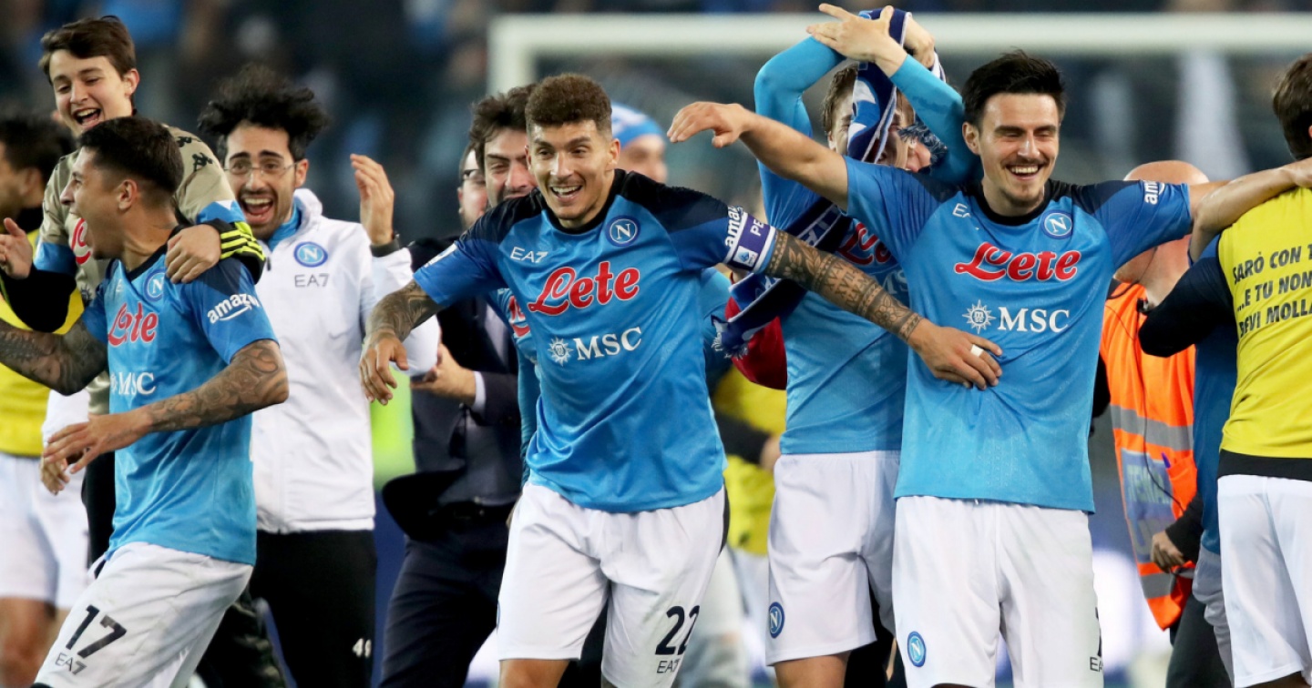 La gioia di Di Lorenzo e compagni al termine dell’incontro con l’Udinese