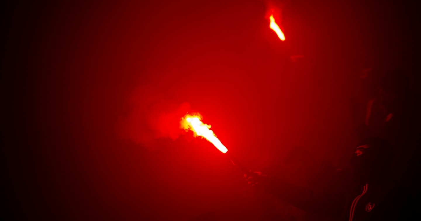 Tifosi sugli spalti accendono fumogeni