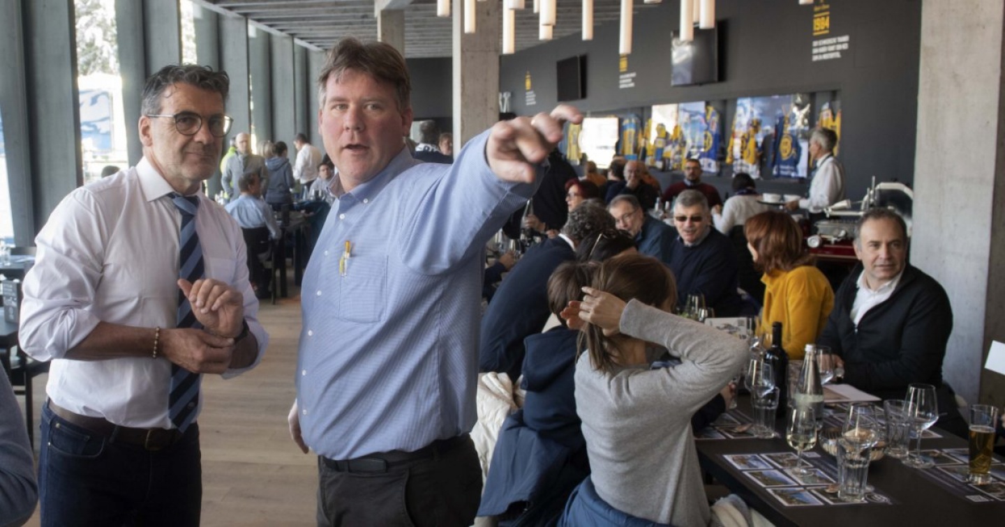 Per capire come è andata la prima giornata di torneo facciamo una capatina a 'Casa Biancoblù', dove ci accoglie il suo responsabile, Giovanni Croce, gerente da sette anni del ristorante Da Elio. «La prima giornata è andata benissimo – racconta entusiasta il faidese –. La sera. dopo la partita dell'Ambrì, qui c'era il pienone». Cosa ha spinto Giovanni Croce a imbarcarsi in quest'avventura nel cuore della Spengler? «La voglia di fare qualcosa per significare questa edizione, speciale e unica vista la presenza dell'Ambrì Piotta. Certo, non è evidente passare da una pizzeria come la mia a questo locale, decisamente più spartano ma che dà un bel daffare...», aggiunge tirando un sospiro per rifiatare tra un'ordinazione e l'altra. La clientela? «Beh, con il nome che abbiamo (Casa Biancoblù) è inevitabile che gran parte della clientela sia per gran parte, se non unicamente, ticinese (e fra gli avventori della prima serata c'era anche il presidente biancoblù Filippo Lombardi, ndr). Proprio per questo abbiamo predisposto una carta di pietanze tutte rigorosamente tipiche del Ticino. Ciò anche con l'intento di avvicinare altre persone alla nostra cultura gastronomica». E il piatto che va per la maggiore? «La prima serata abbiamo propsoto qualcosa di tipicamente leventinese: i 'fitri' di Anzonico, ed è stato un successone, seguito da puré e brasato e da un dolce di Sosto».