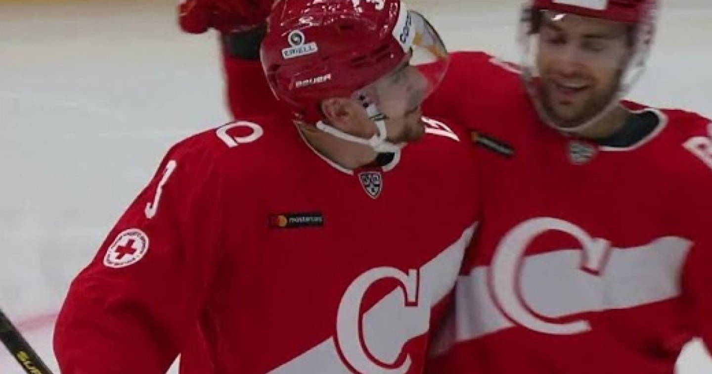 Qui (a sinistra) celebrato in occasione di una sua rete in Khl (Youtube)