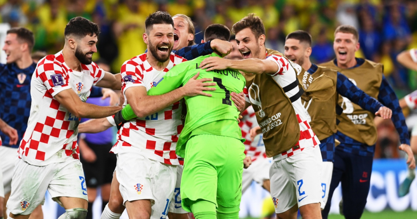 La Croazia è la prima semifinalista della Coppa del mondo. Ha battuto a sorpresa il favoritissimo Brasile ai calci di rigore. Decisivi gli errori di Rodrygo al primo rigore (parata di Livakovic) e Marquinhos al quarto (palo). È finita con il pianto di Neymar tra le braccia di Modric, quella che sembrava dover essere la rincorsa brasiliana al sesto alloro, un titolo che a Rio e dintorni manca da vent’anni (2002) e adesso diventeranno almeno ventiquattro. La Croazia ha disputato una prestazione eccellente, l’unica con la quale poteva sperare di superare la formazione sudamericana: tanto pressing alto e difesa accorta, con le maglie che sono andate via via stringendosi con il passare dei minuti. Se le occasioni migliori sono capitate sui piedi dei brasiliani, ai croati va dato il merito di aver messo in difficoltà l’avversario anche sul piano della costruzione del gioco, in particolare nel corso del primo tempo. Superlativa la prestazione del portiere Livakovic, così come quella della coppia centrale difensiva formata da Lovic e Gvardiol, senza dimenticare un centrocampo nel quale Modric, a 37 anni, è stato ancora una volta il migliore. Onore alla compagine europea anche per aver saputo reagire al gol di Neymar al 105’ (splendido doppio uno-due con Rodrygo e Paquetà), trovando il pareggio al 116’ con una conclusione di Petkovic leggermente deviata da Marquinhos, con un Brasile fattosi però trovare colpevolmente scoperto su azione di ripartenza.